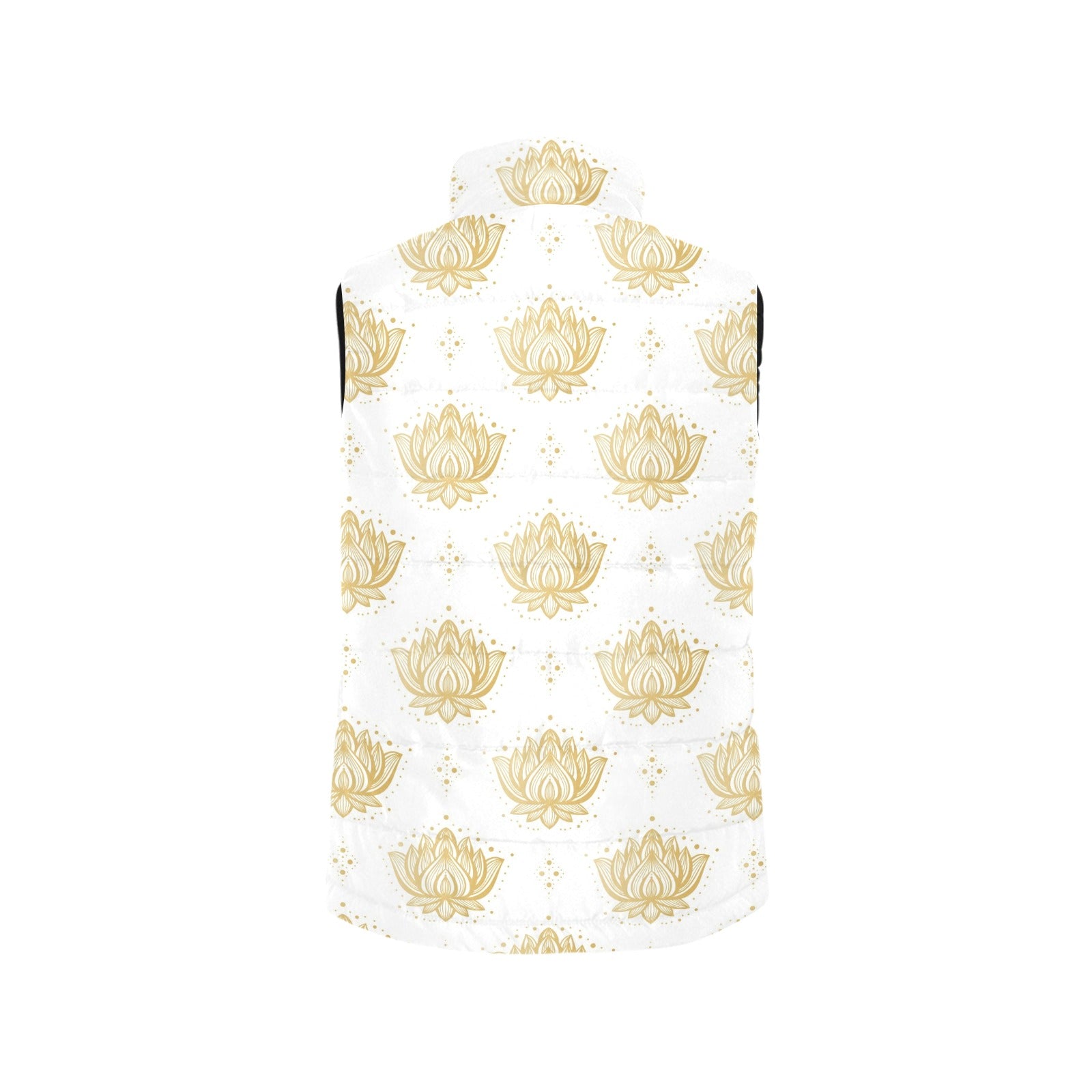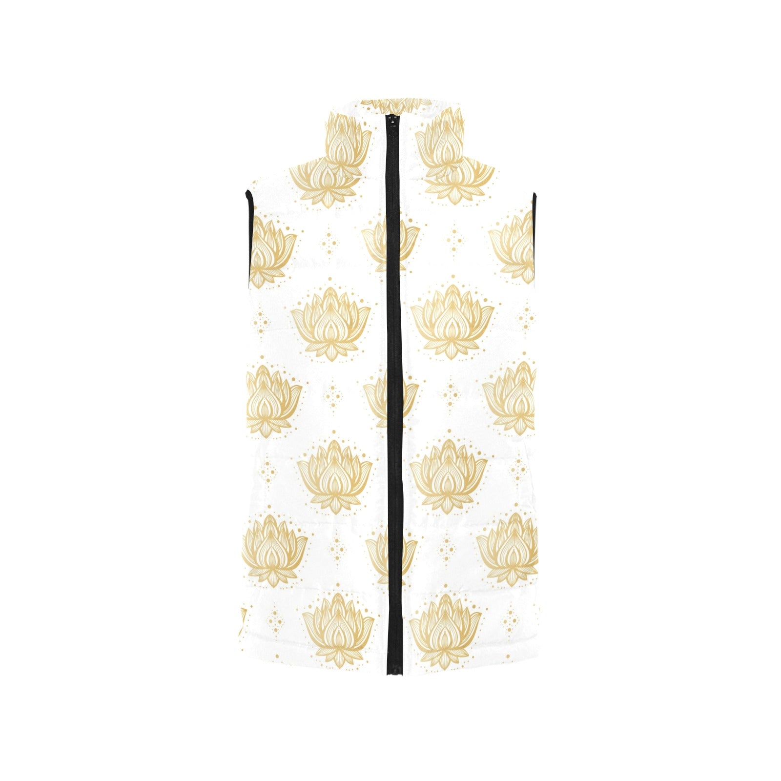 Gold Ornamental lotue waterlily symbol pattern Women's Padded Vest