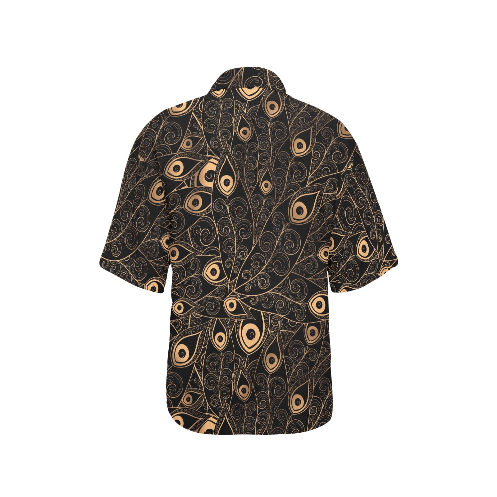 Gold peacock feather pattern Women's All Over Print Hawaiian Shirt