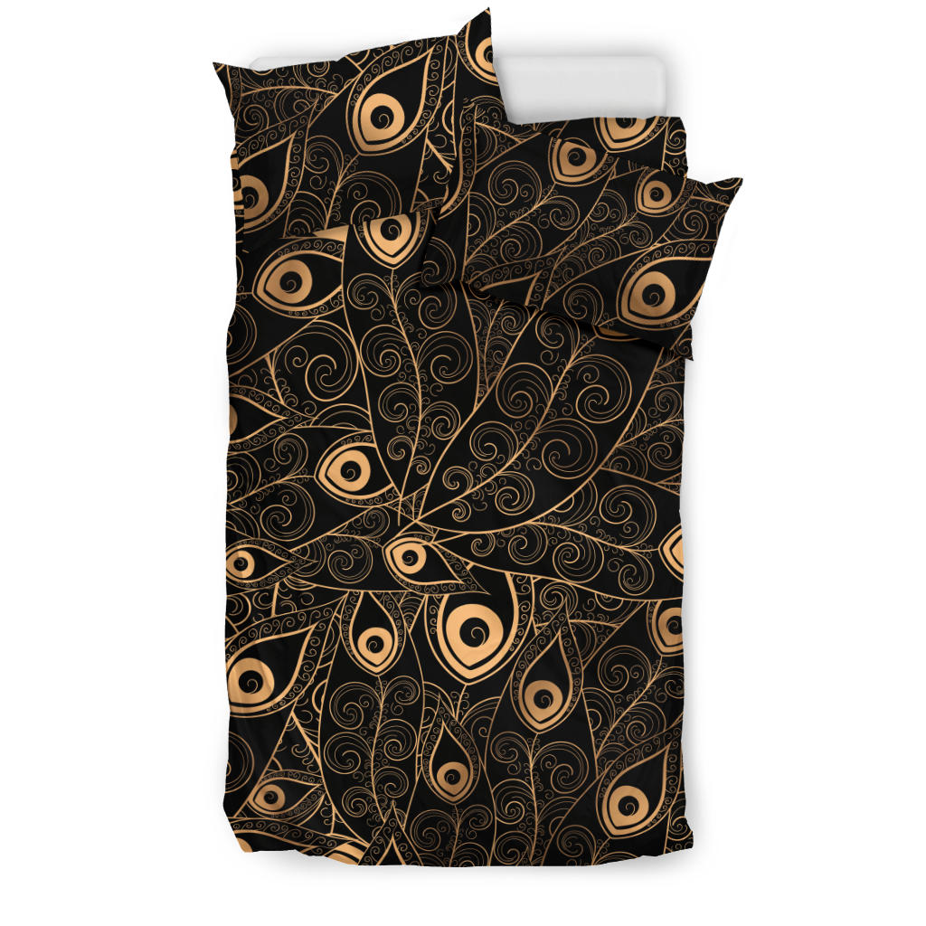 Gold peacock feather pattern Bedding Set is a uniqued design and limited item. It made to order, hand printed, and sewn with love in our factory.