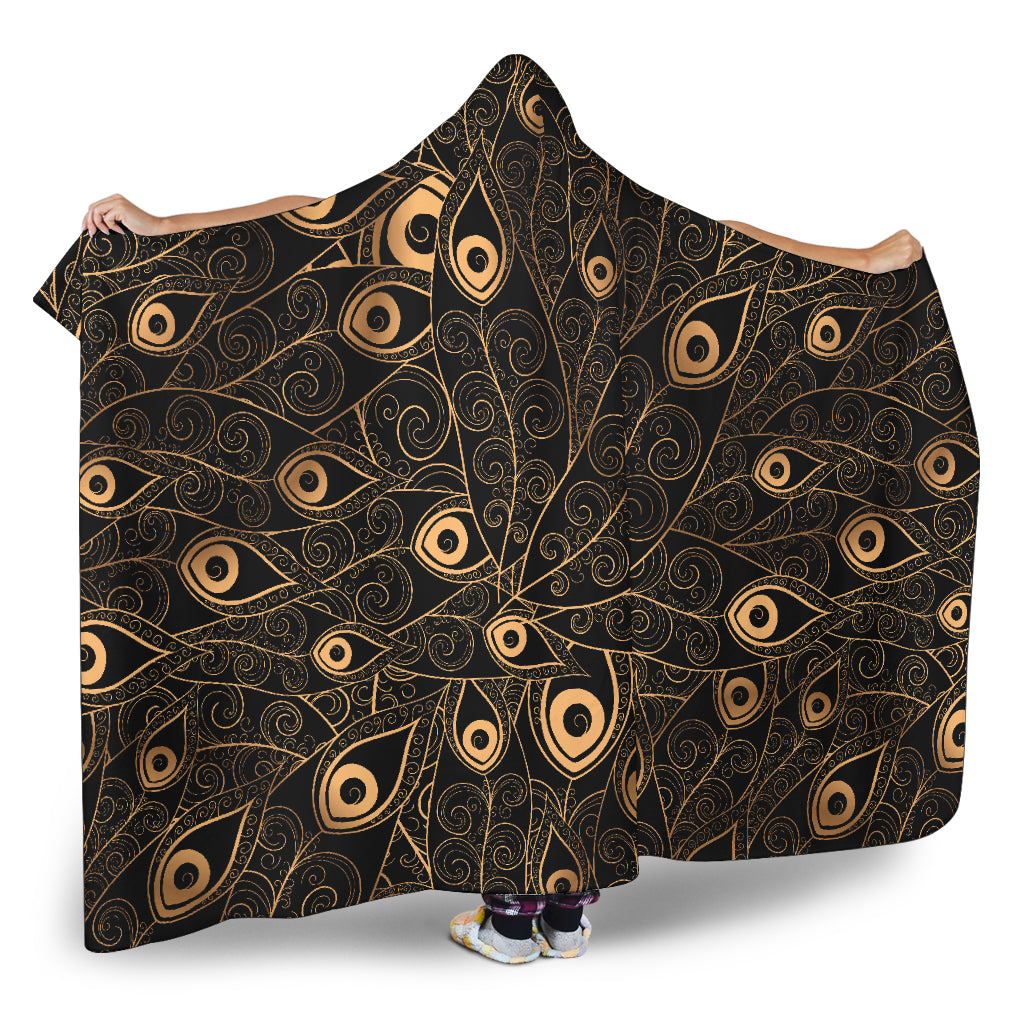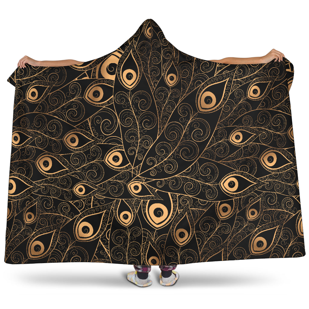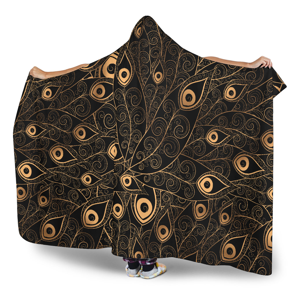 Gold peacock feather pattern Hooded Blanket are custom-made-to-order and handcrafted to the highest quality standards.