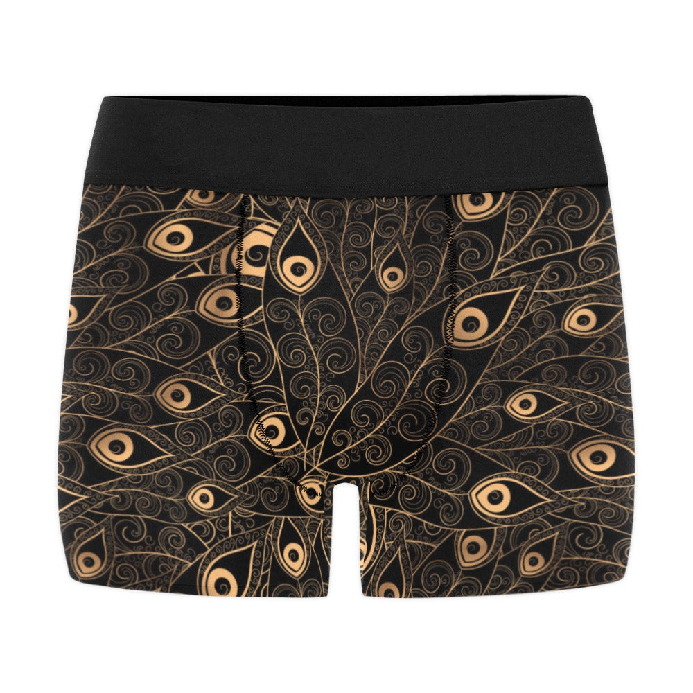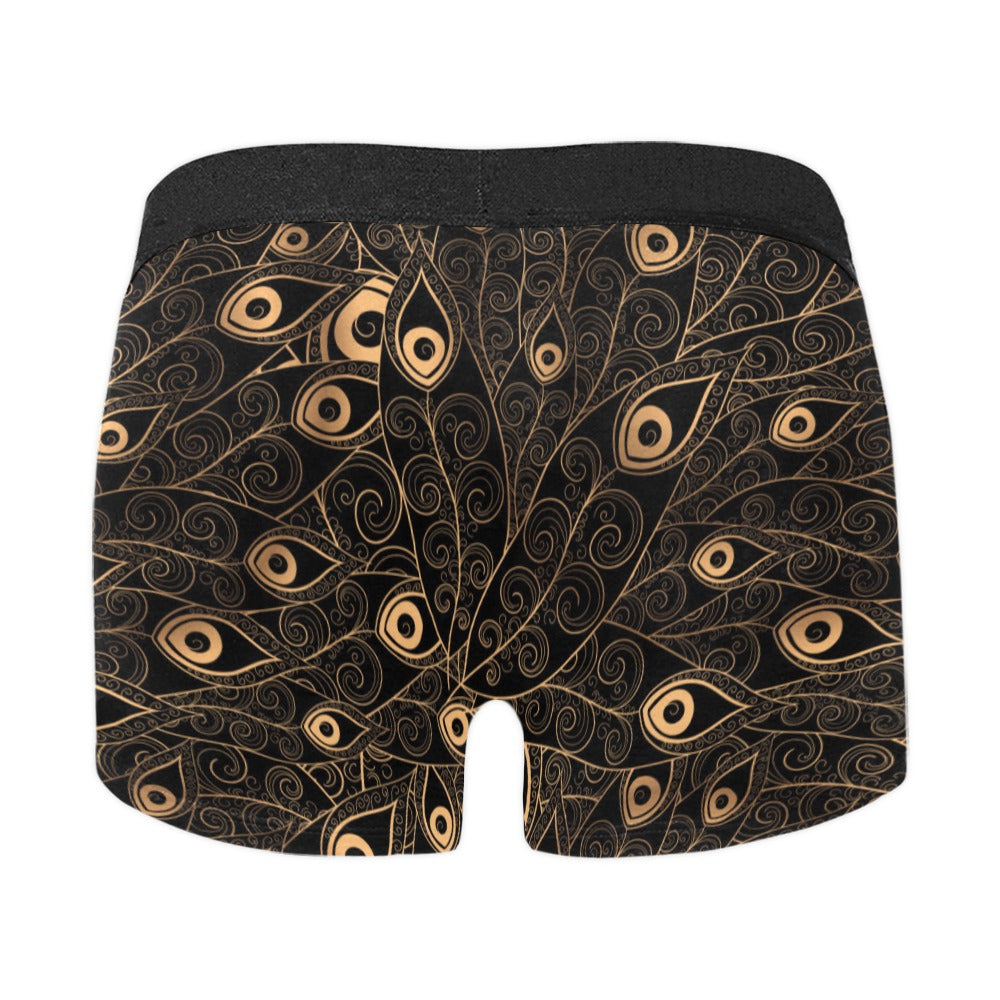 Gold peacock feather pattern Men's All Over Print Boxer Briefs Men's Underwear