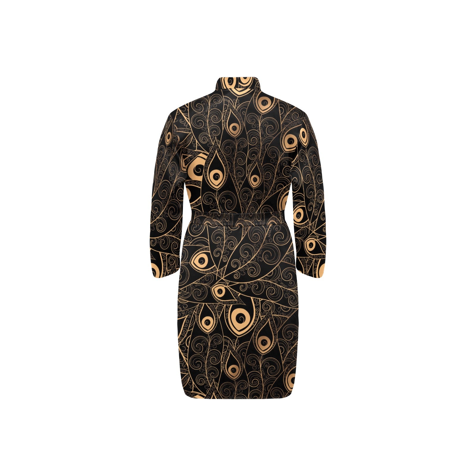 Gold peacock feather pattern Men's Long Sleeve Belted Night Robe