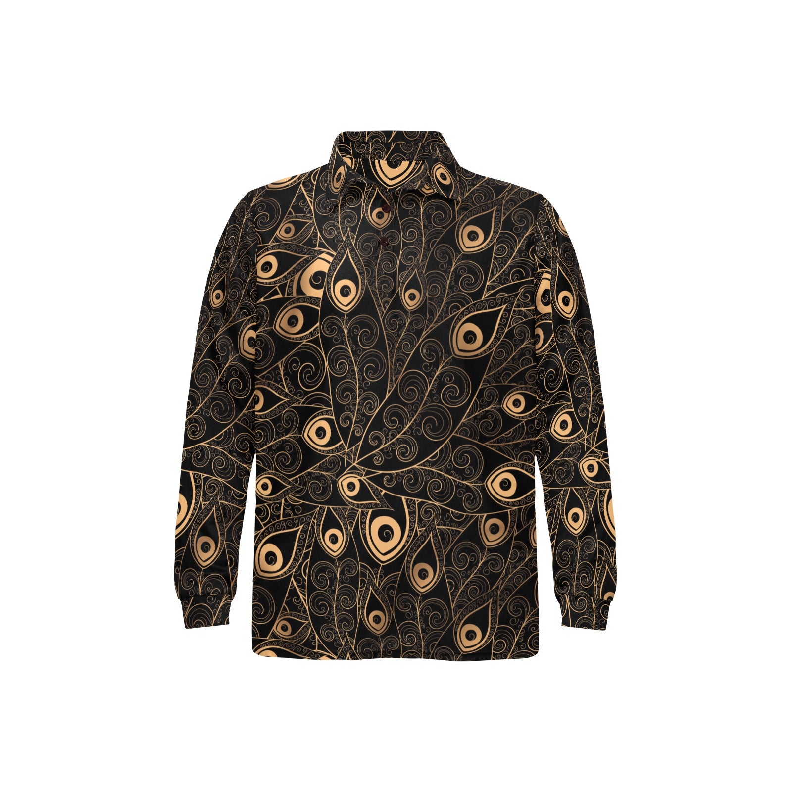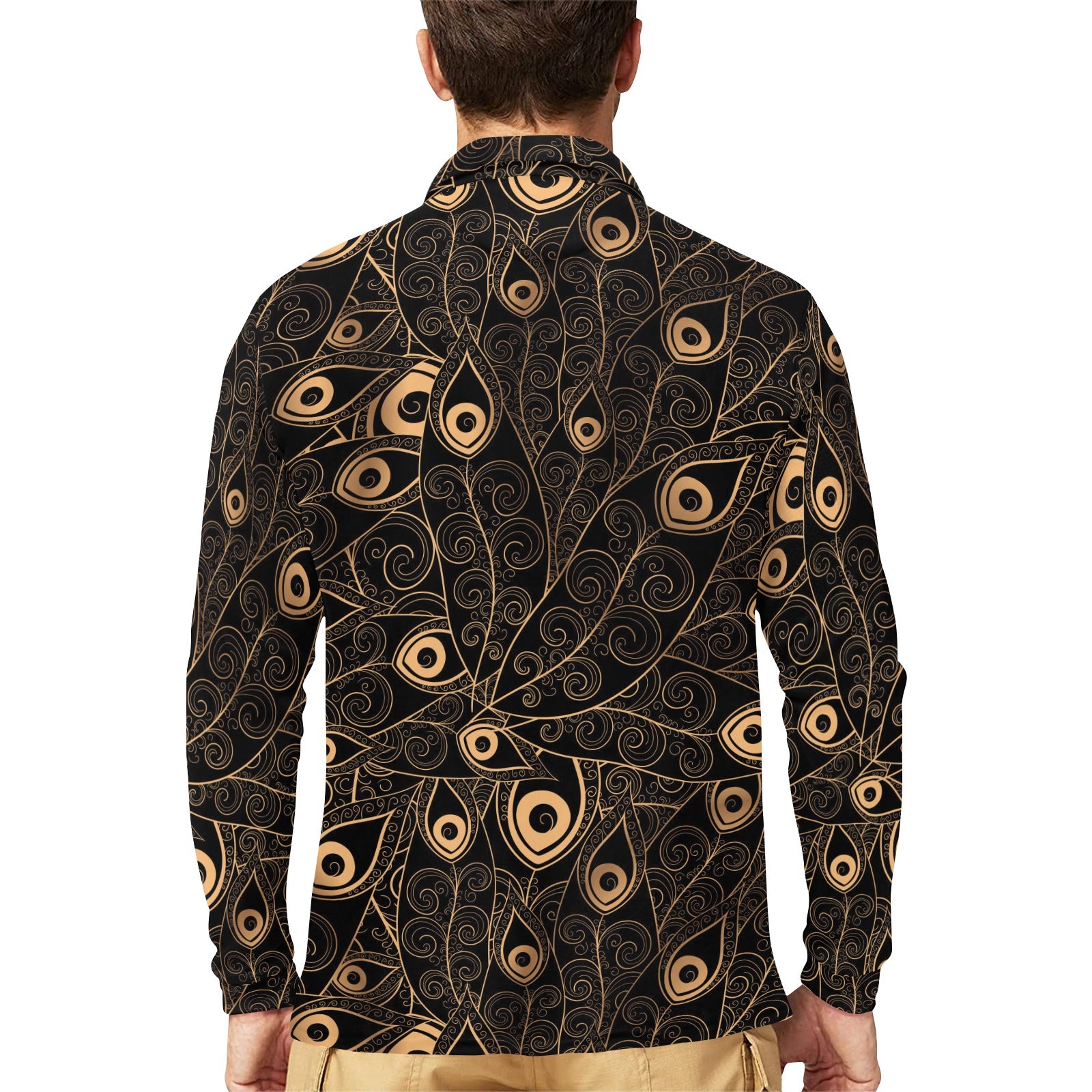 Gold peacock feather pattern Men's Long Sleeve Polo Shirt
