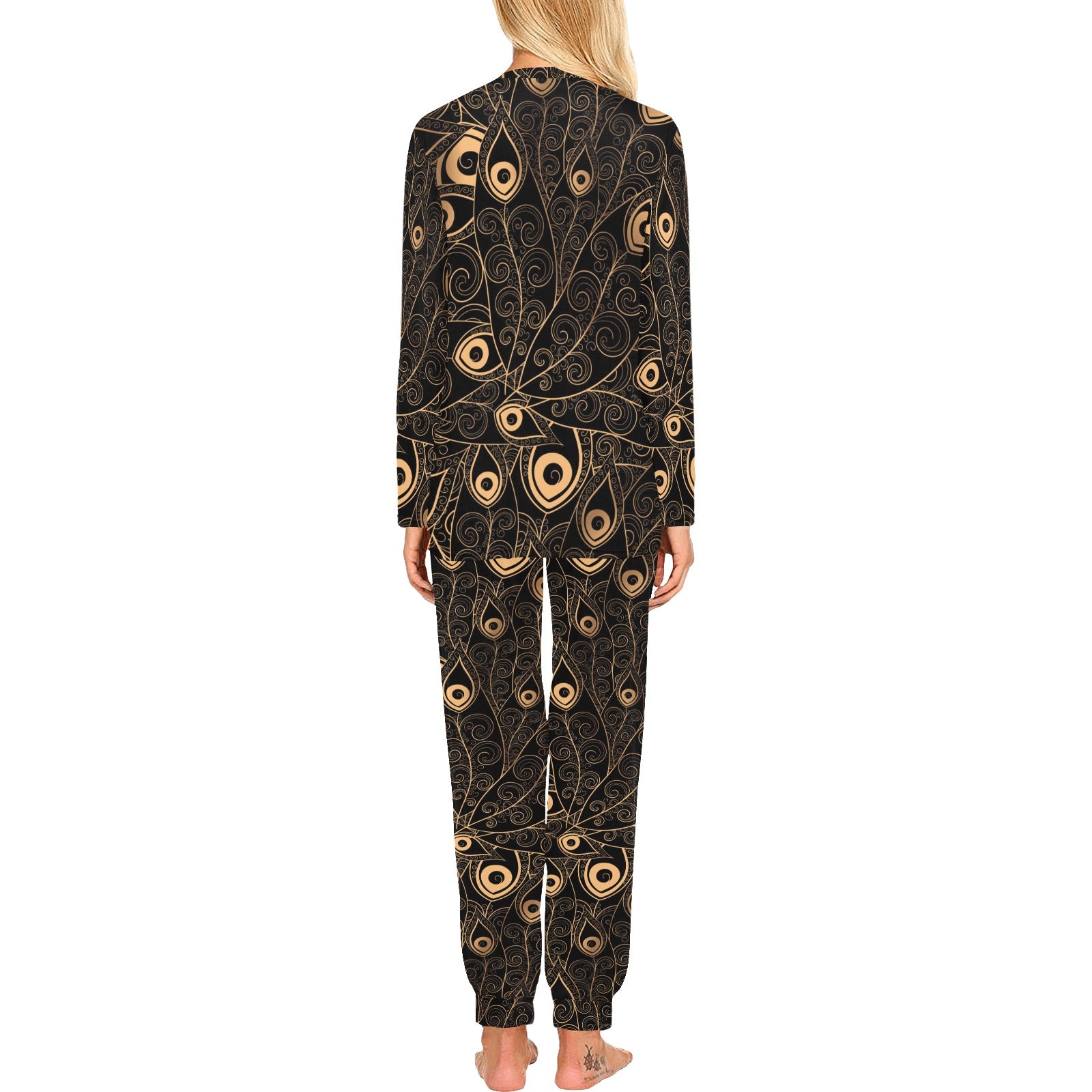 Gold peacock feather pattern Women's All Over Print Pajama Set