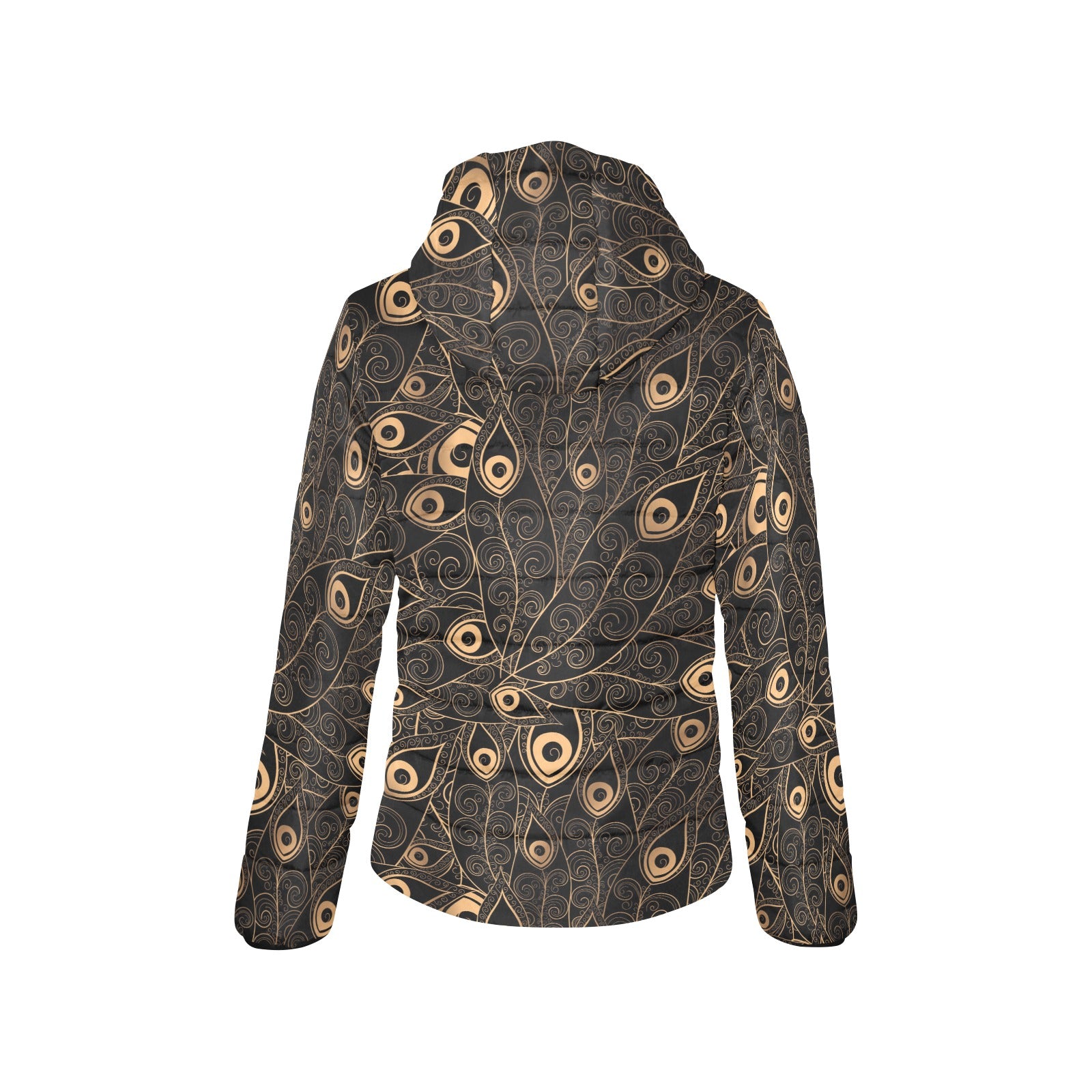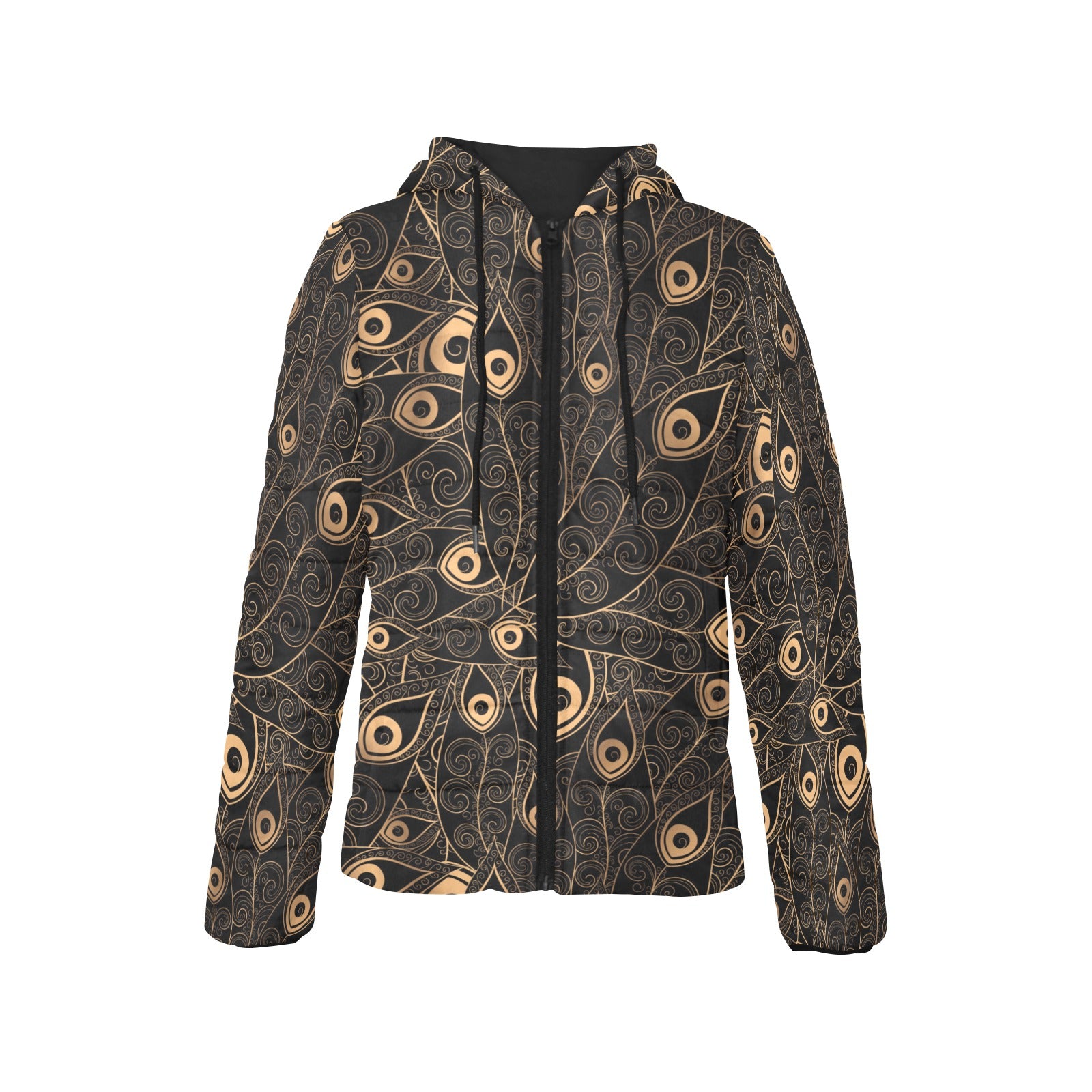 Gold peacock feather pattern Women's Padded Hooded Jacket