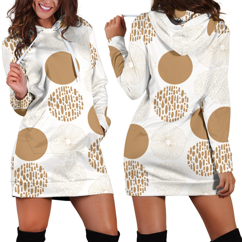 Gold Texture Mushroom Pattern Women'S Hoodie Dress