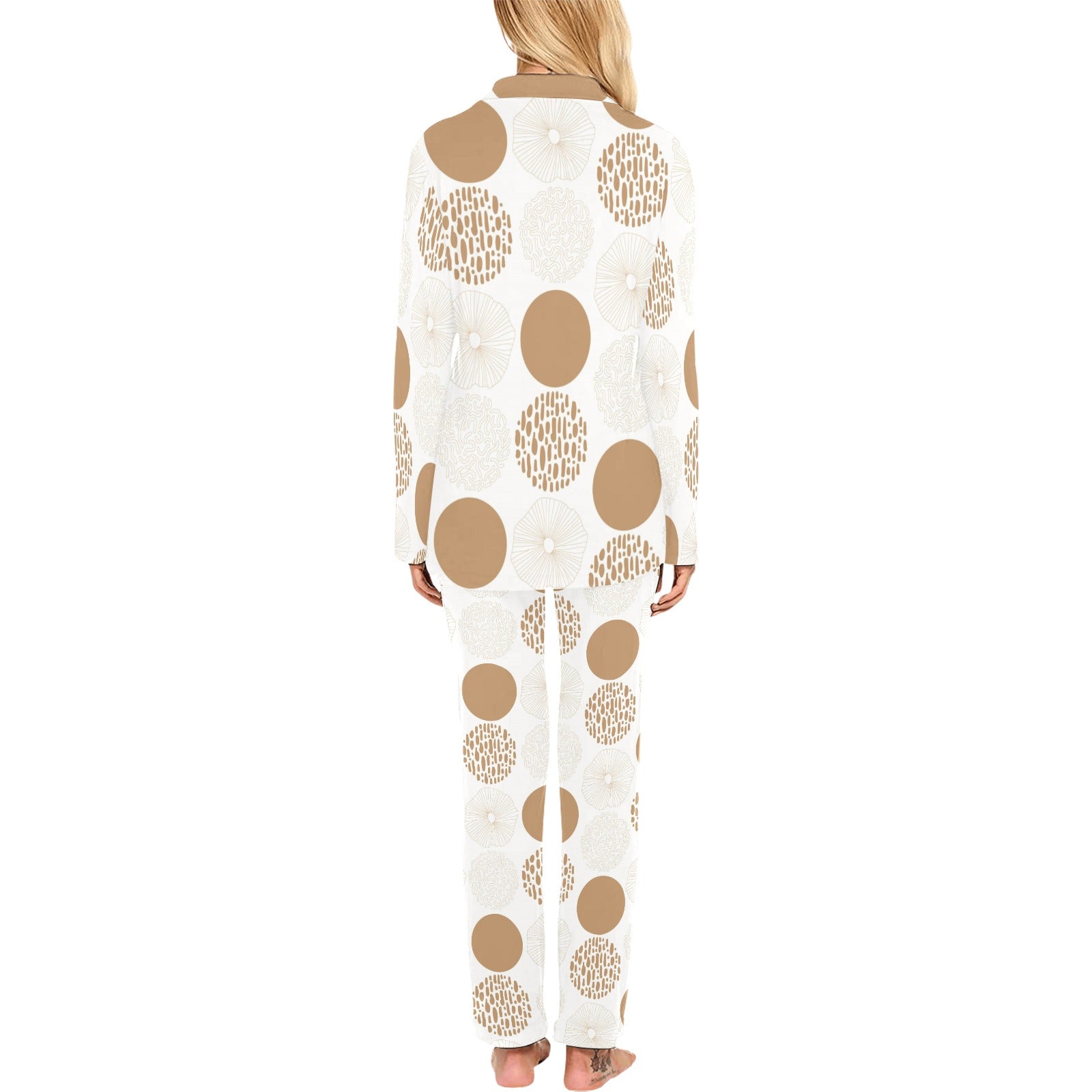 Gold Texture mushroom pattern Women's Long Pajama Set