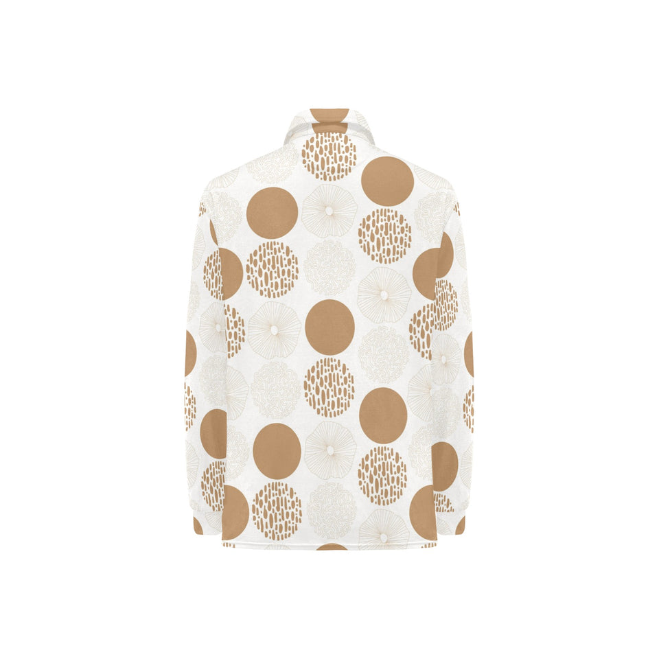 Gold Texture mushroom pattern Women's Long Sleeve Polo Shirt