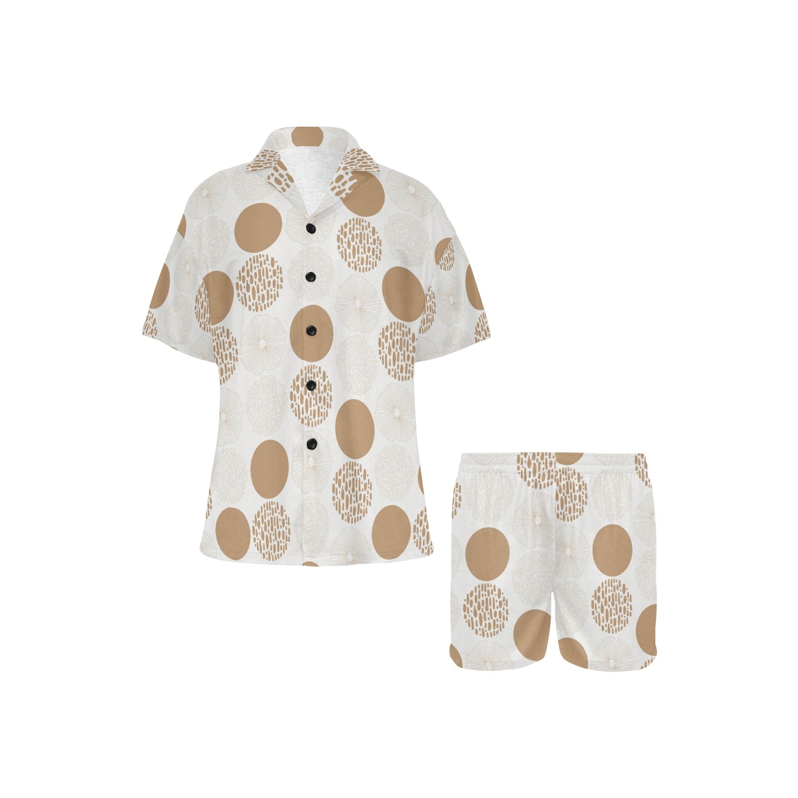 Gold Texture mushroom pattern Women's V-Neck Short Pajama Set