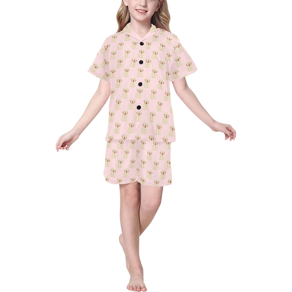 Golden Retriever Pattern Print Design 02 Kids' Boys' Girls' V-Neck Short Pajama Set