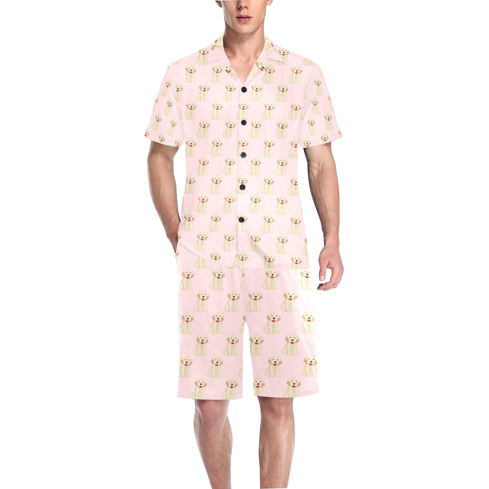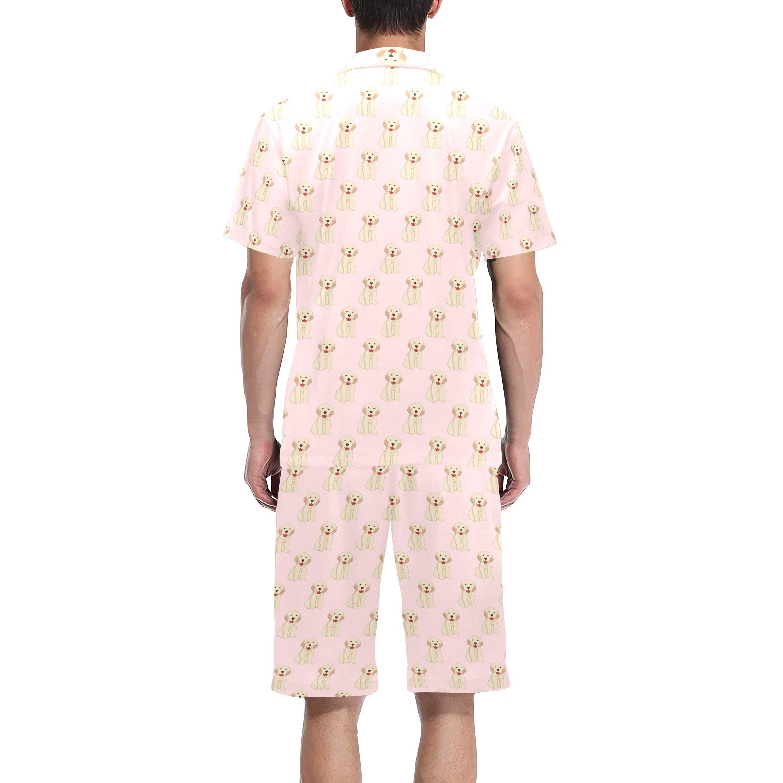 Golden Retriever Pattern Print Design 02 Men's V-Neck Short Pajama Set