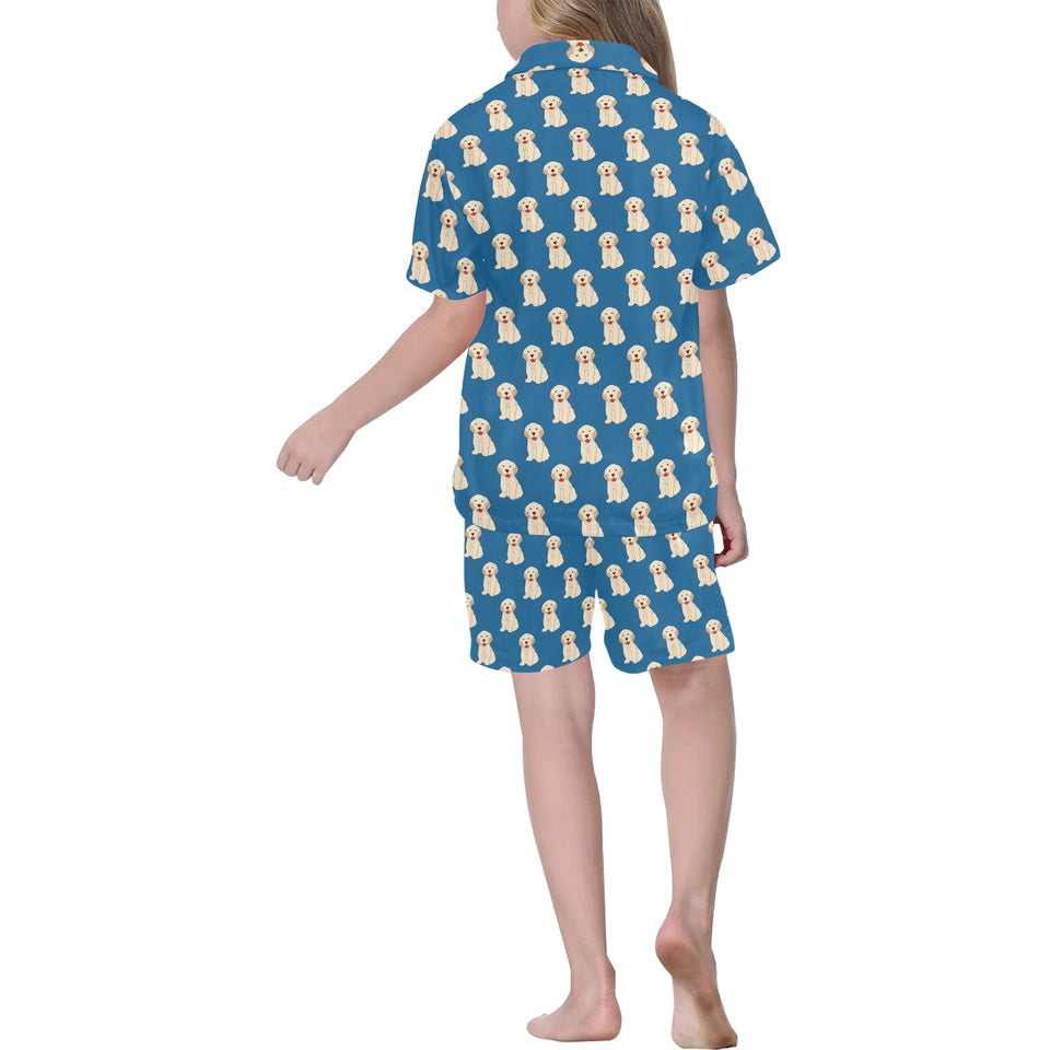 Golden Retriever Pattern Print Design 03 Kids' Boys' Girls' V-Neck Short Pajama Set