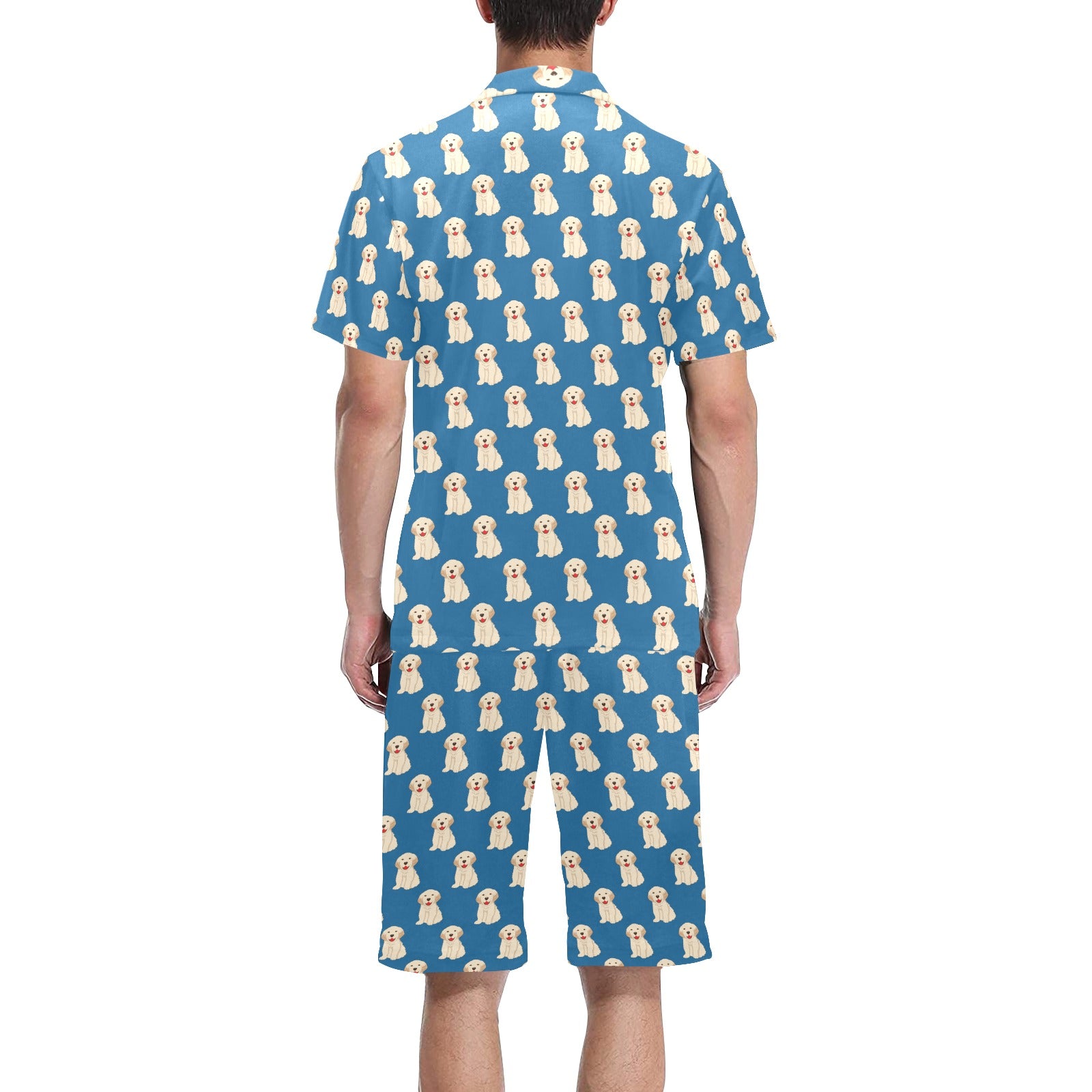 Golden Retriever Pattern Print Design 03 Men's V-Neck Short Pajama Set