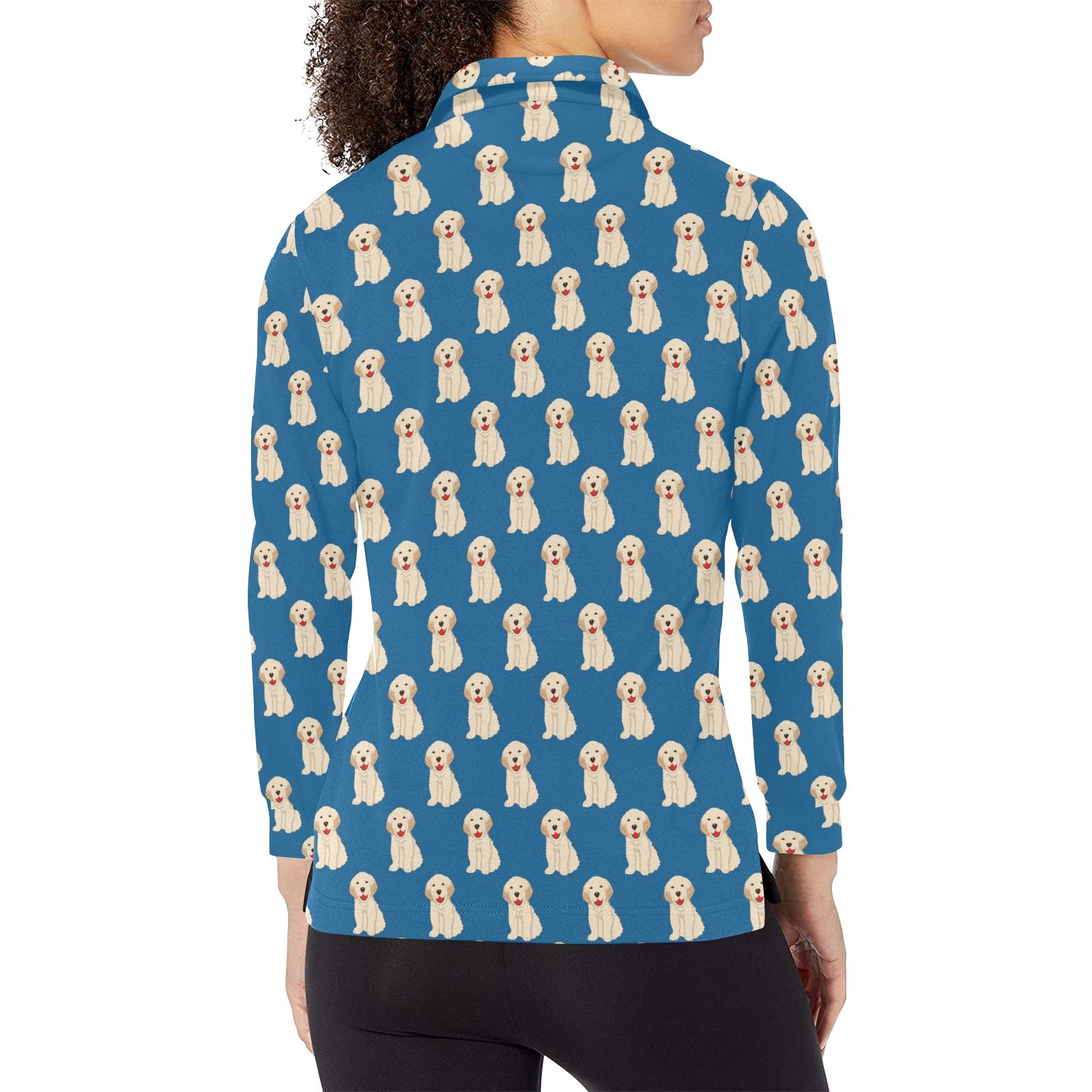 Golden Retriever Pattern Print Design 03 Women's Long Sleeve Polo Shirt
