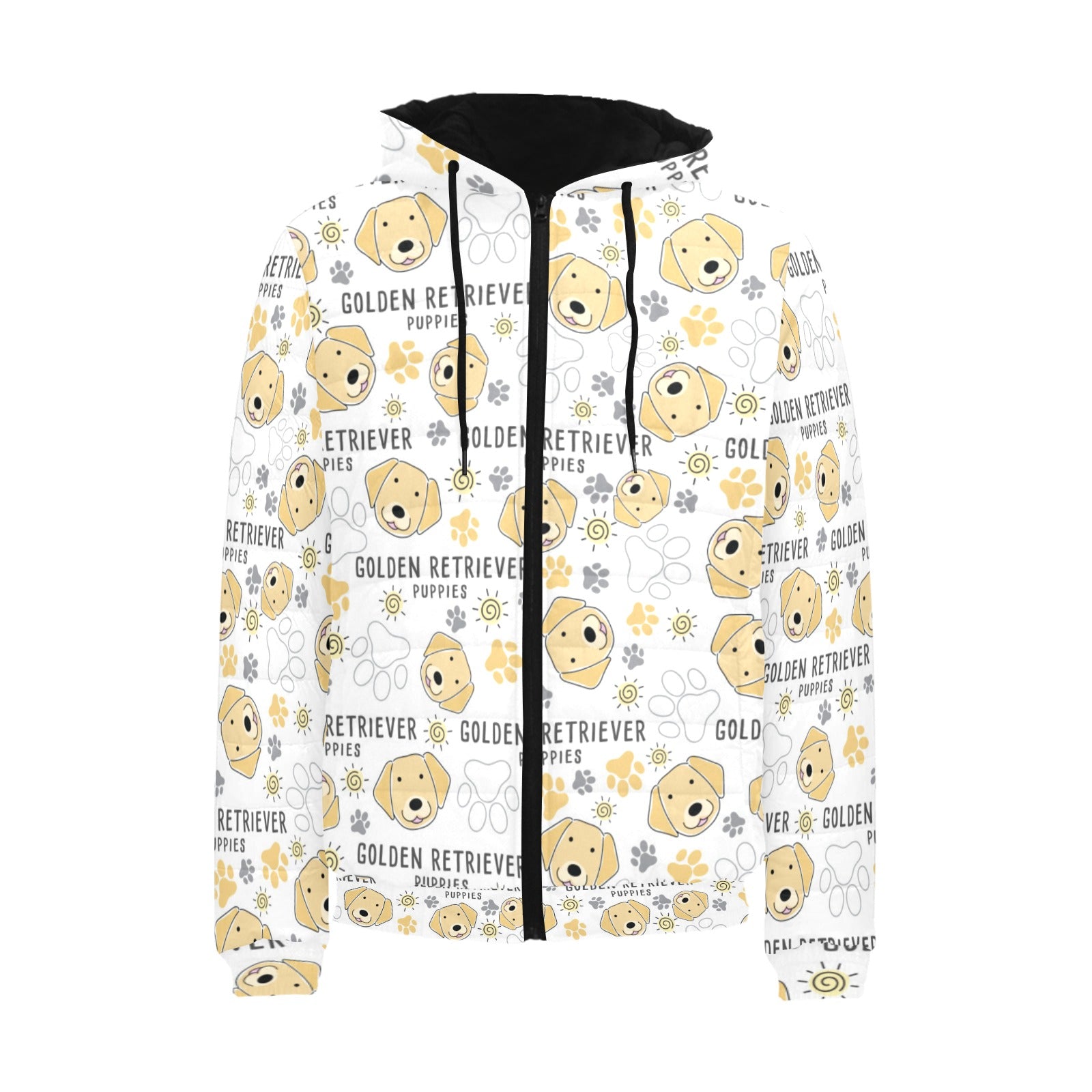 Golden Retriever Pattern Print Design 04 Men's Padded Hooded Jacket