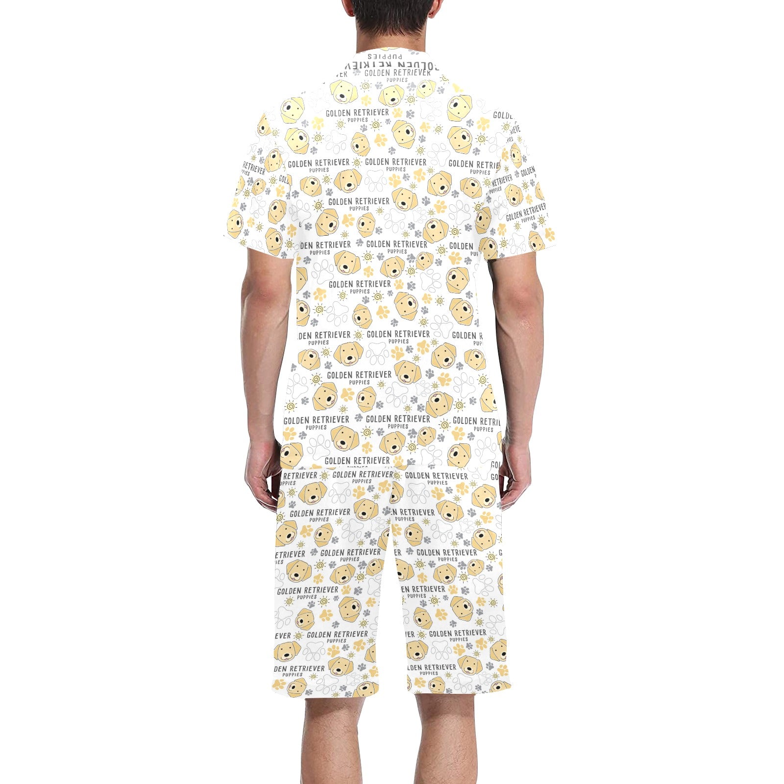 Golden Retriever Pattern Print Design 04 Men's V-Neck Short Pajama Set