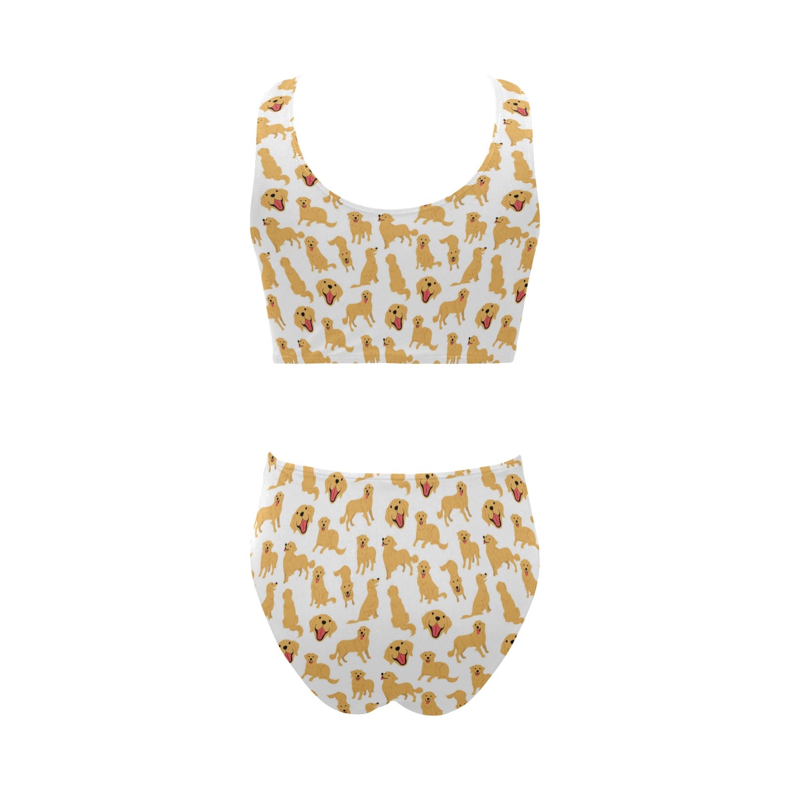 Golden Retriever Pattern Print Design 05 Chest Bowknot High Waisted Bikini Swimsuit