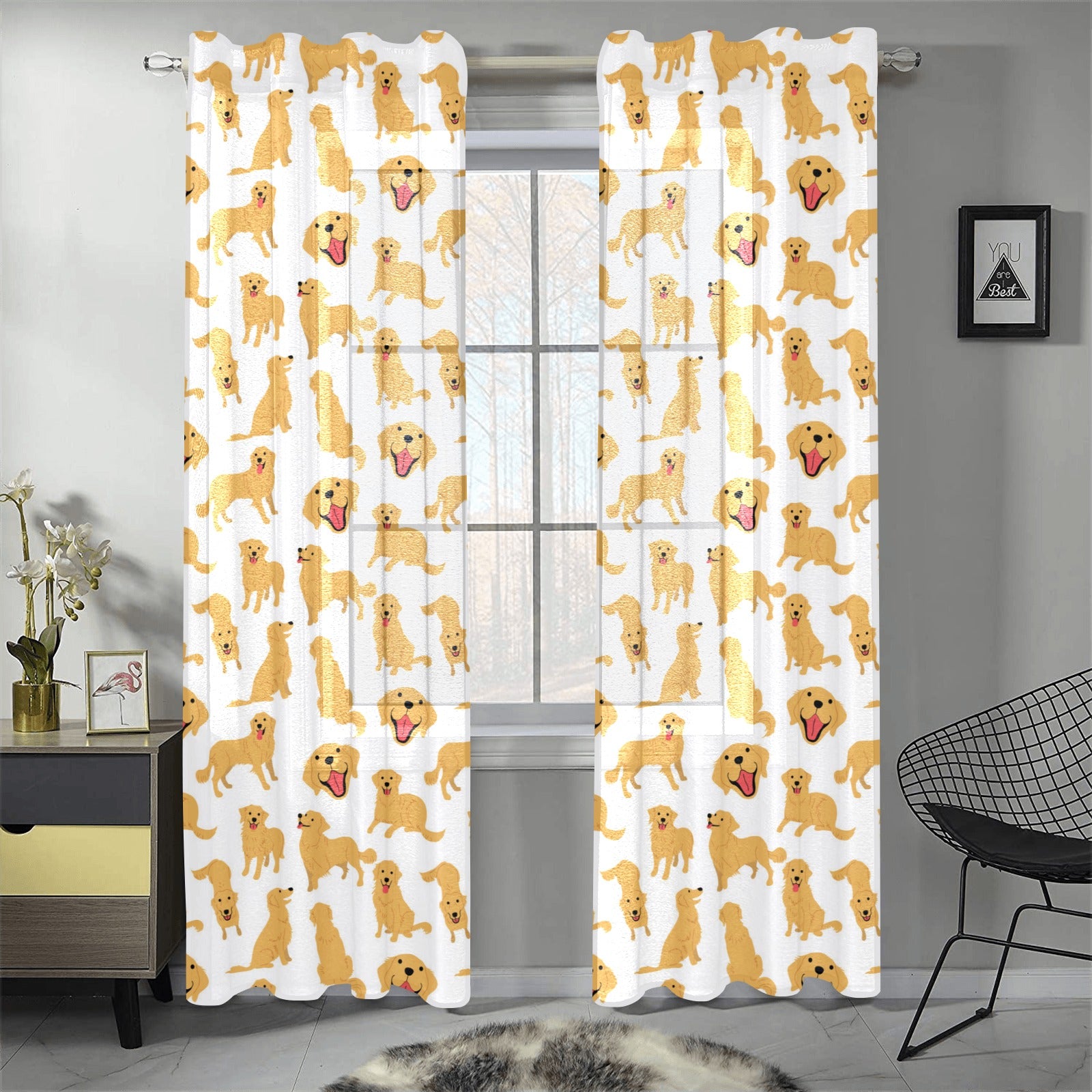 Golden Retriever Pattern Print Design 05 Gauze Curtain