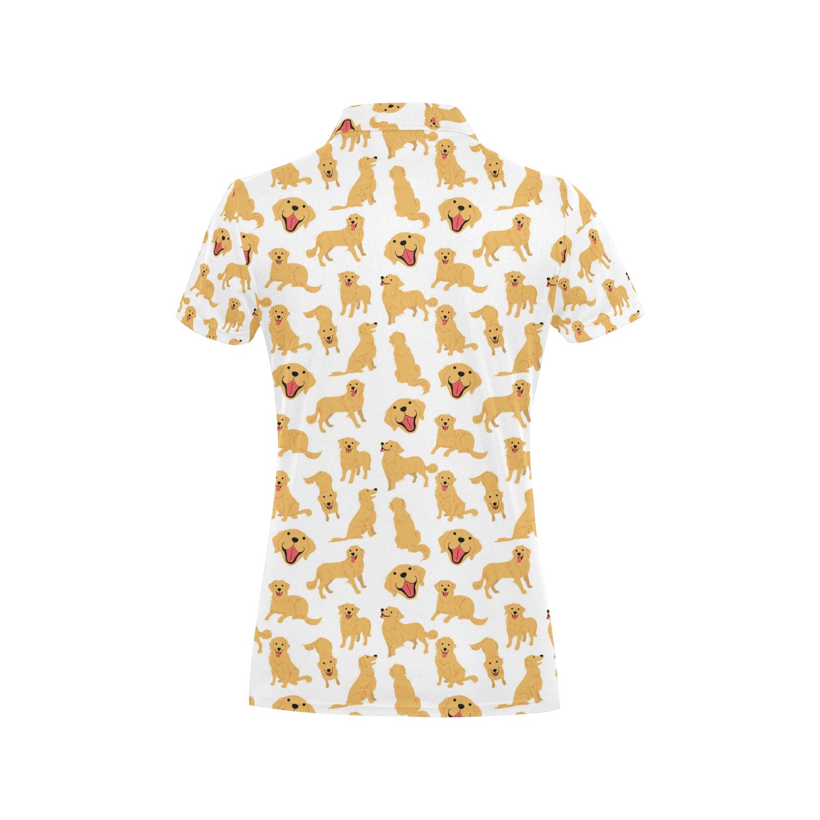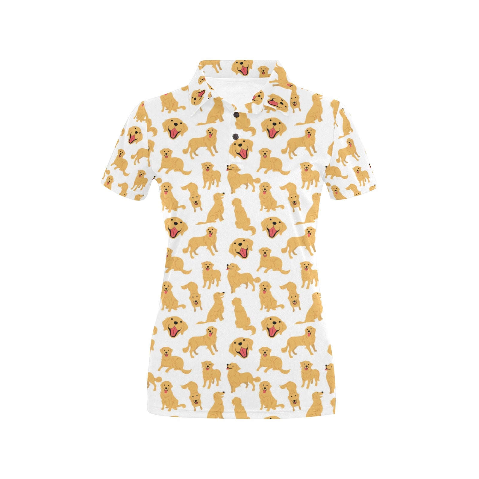 Golden Retriever Pattern Print Design 05 Women's All Over Print Polo Shirt