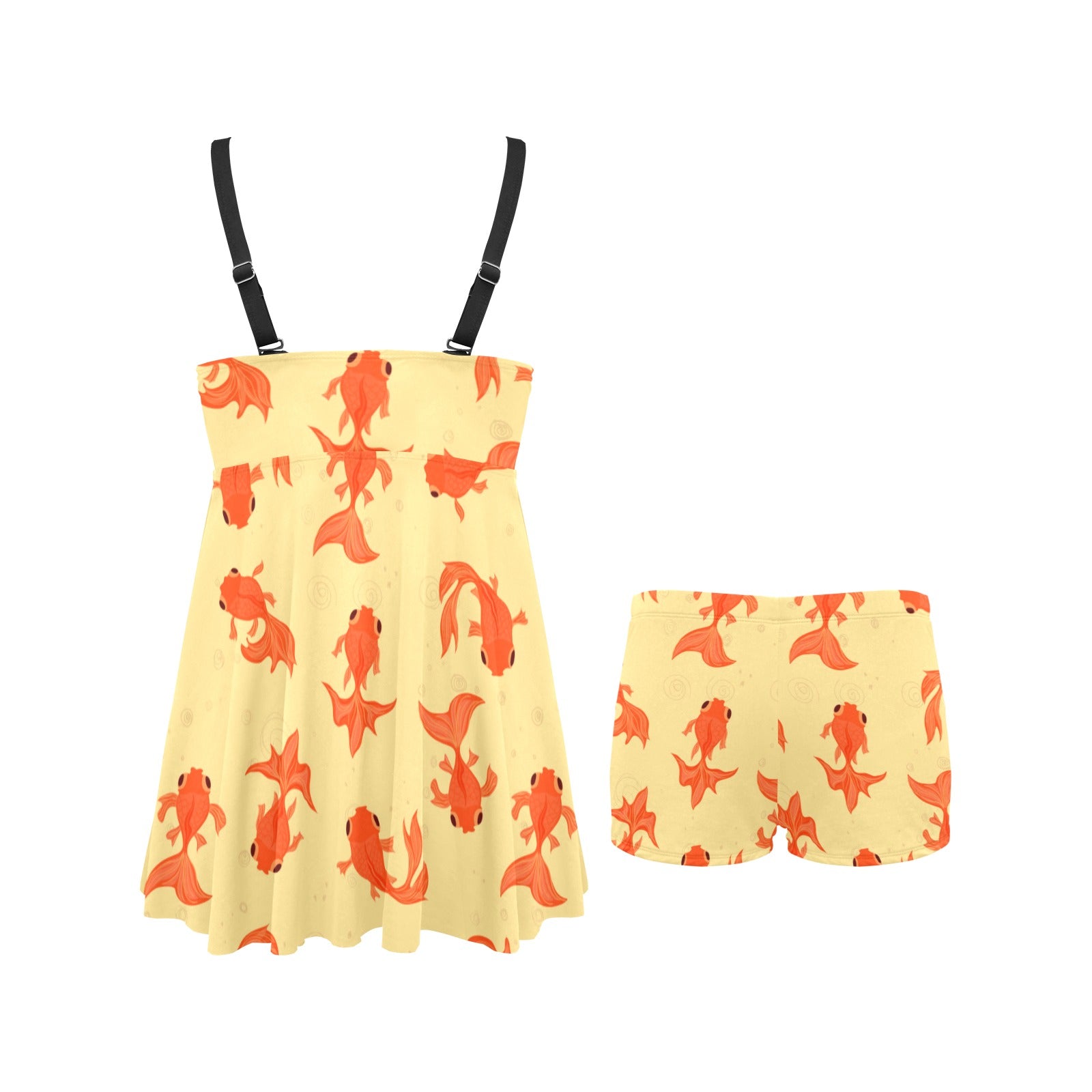 Goldfish Pattern Print Design 02 Chest Sexy Pleated Two Piece Swim Dress
