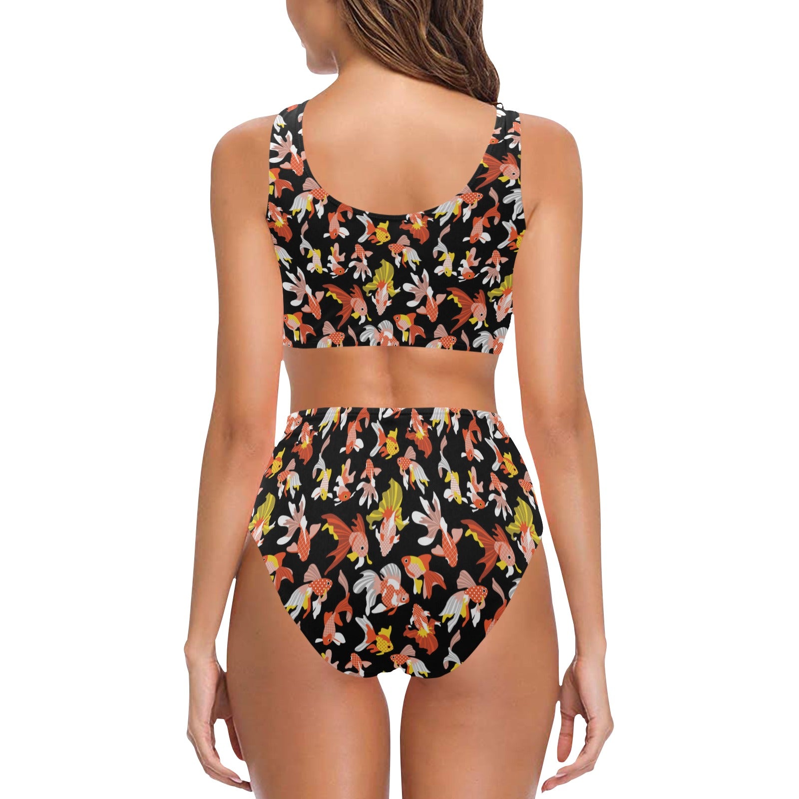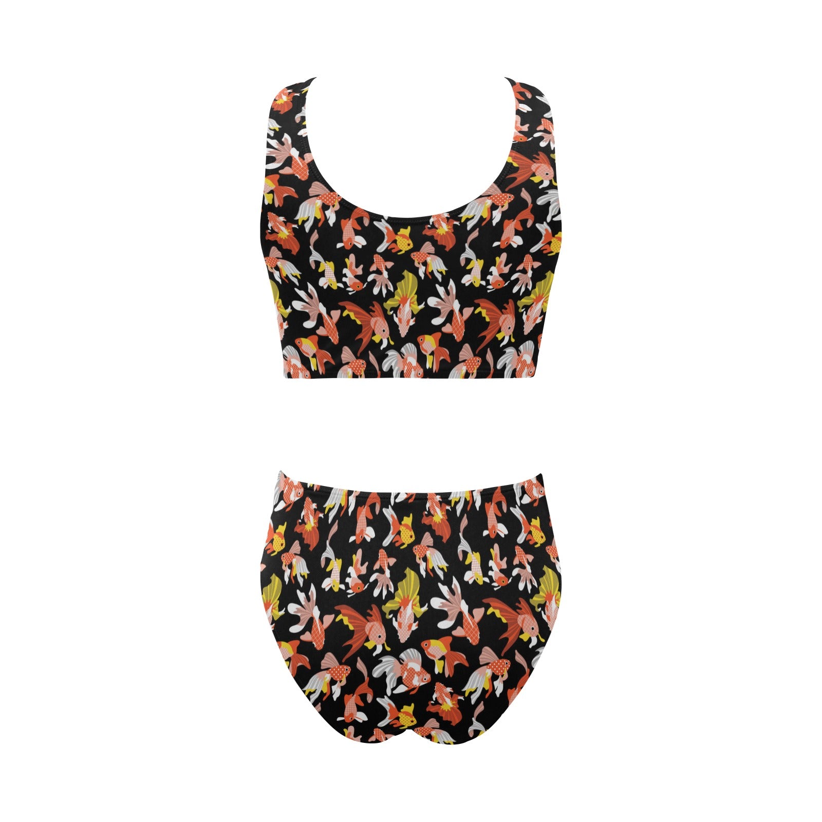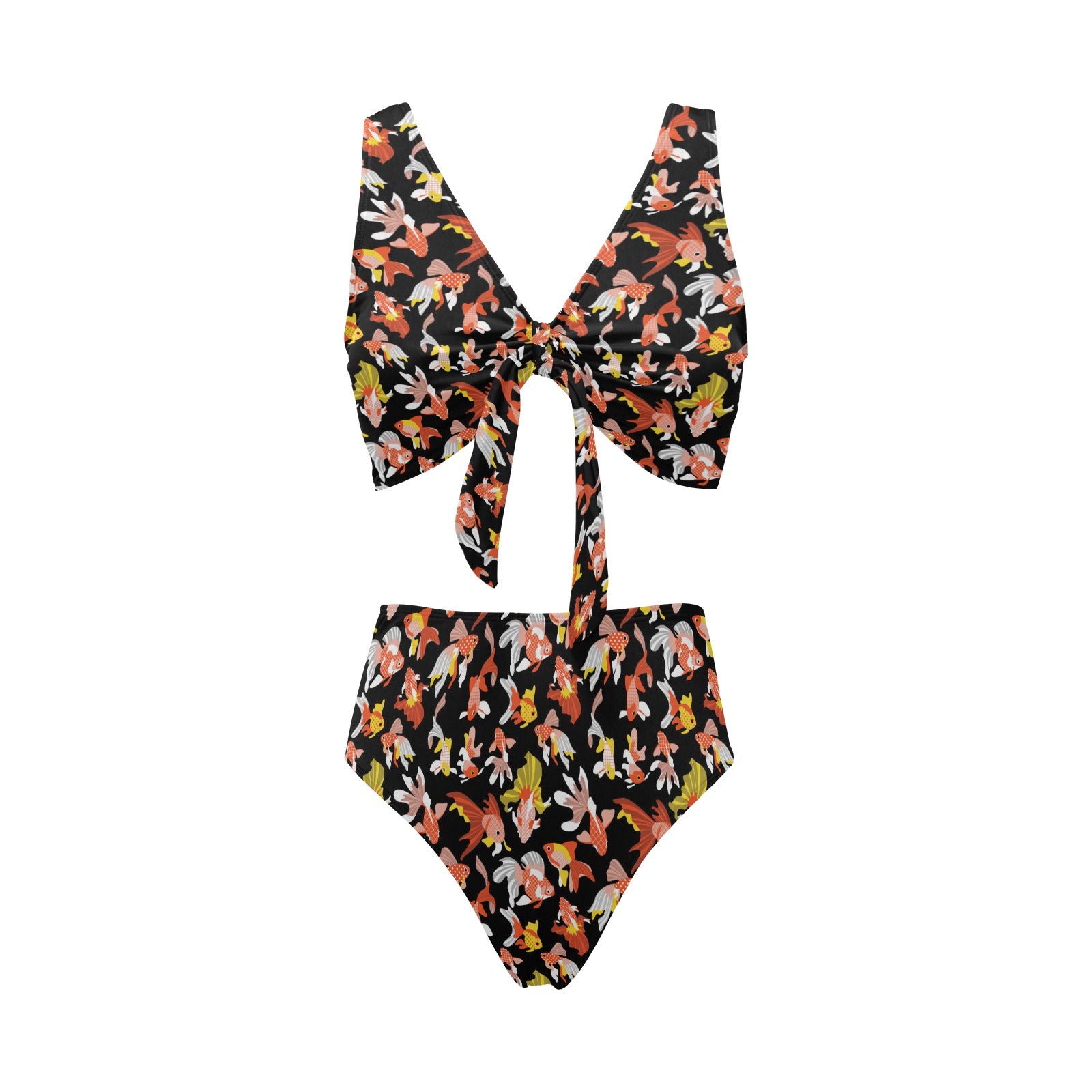 Goldfish Pattern Print Design 03 Chest Bowknot High Waisted Bikini Swimsuit