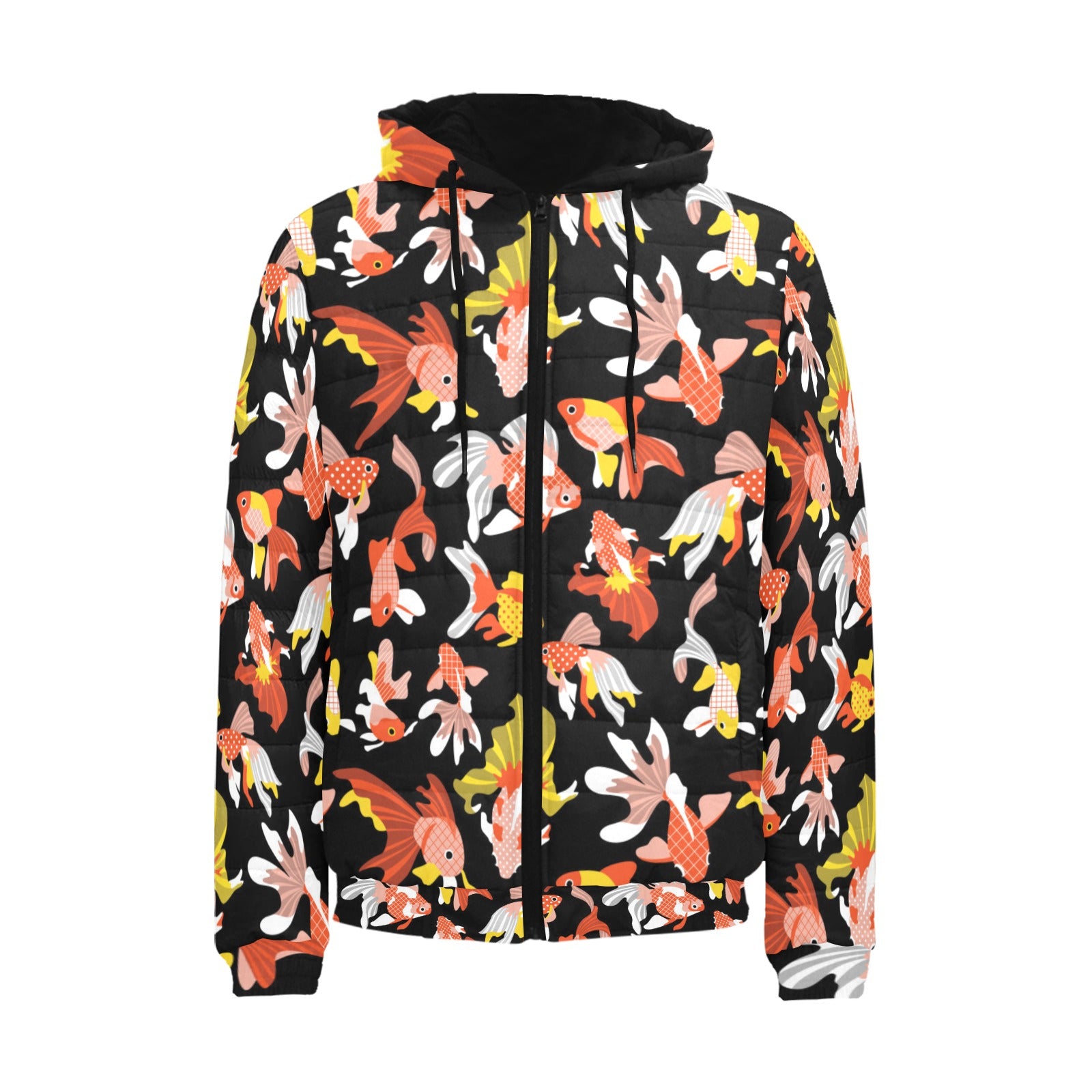Goldfish Pattern Print Design 03 Men's Padded Hooded Jacket