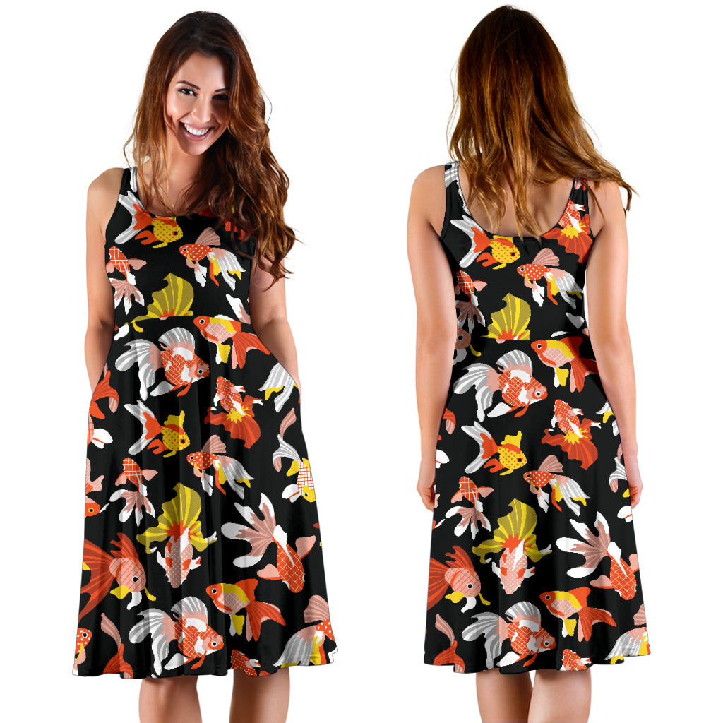 Goldfish Pattern Print Design 03 Sleeveless Midi Dress