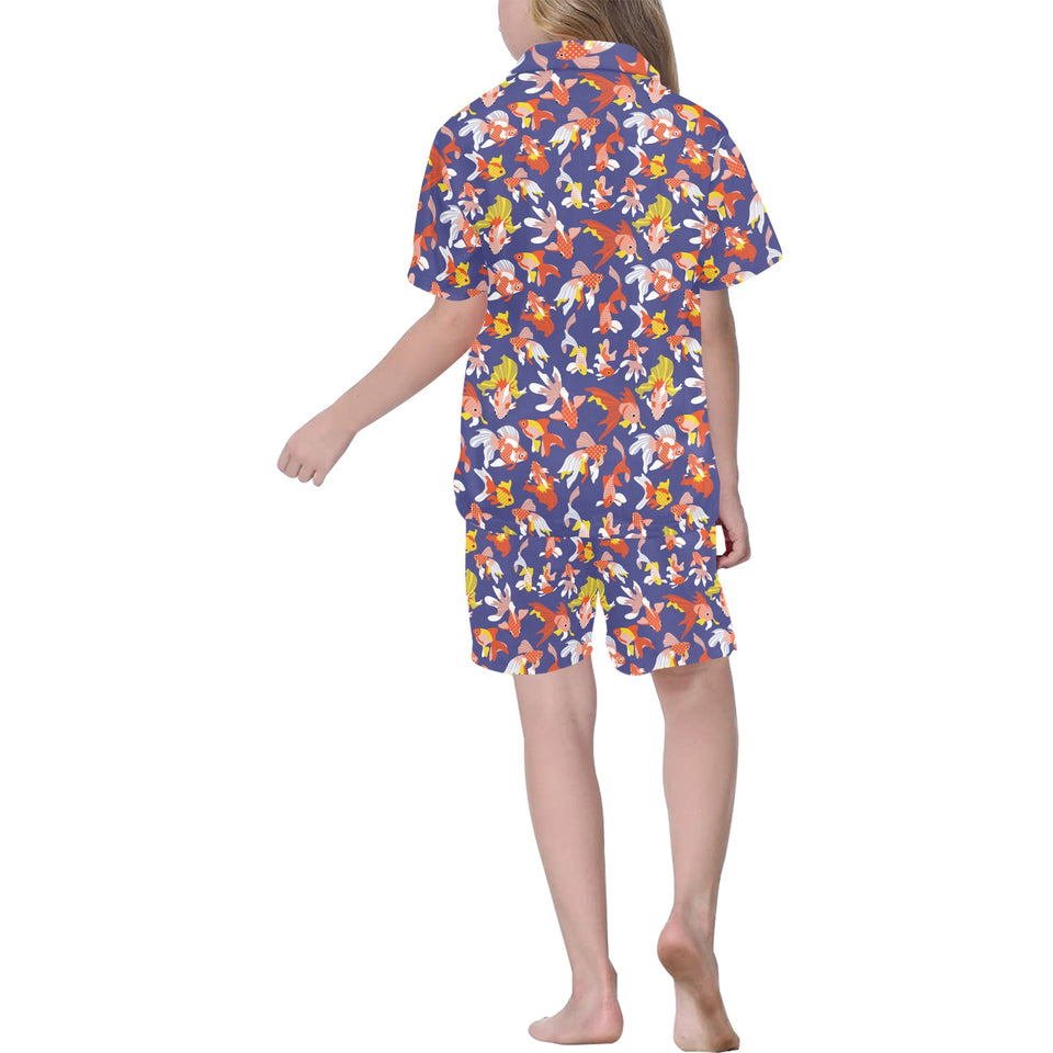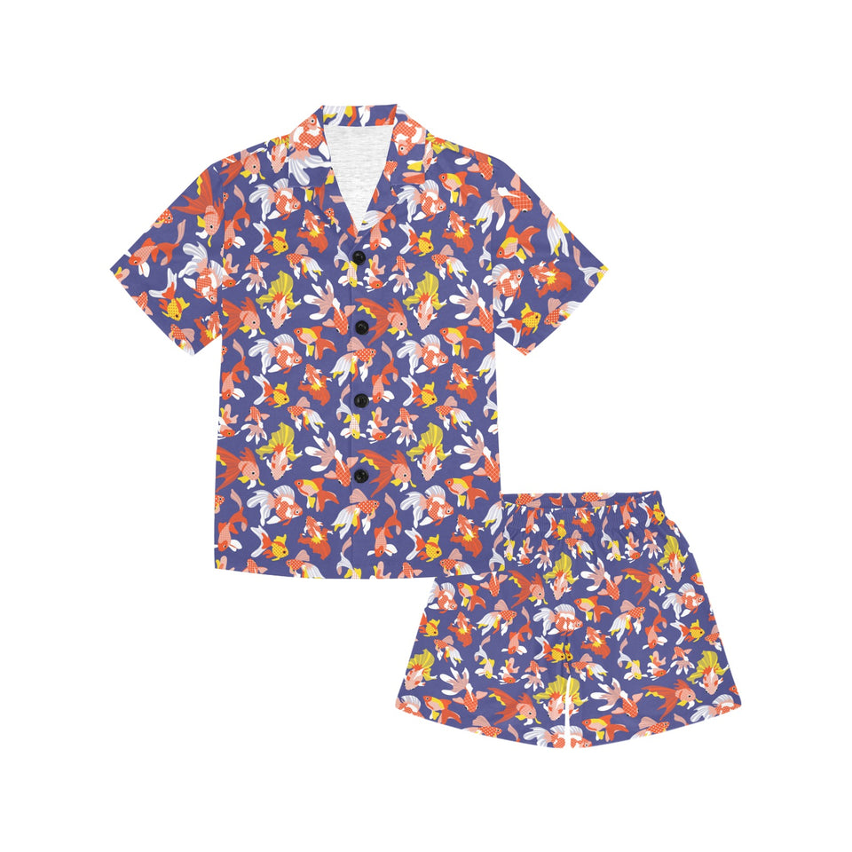 Goldfish Pattern Print Design 04 Kids' Boys' Girls' V-Neck Short Pajama Set