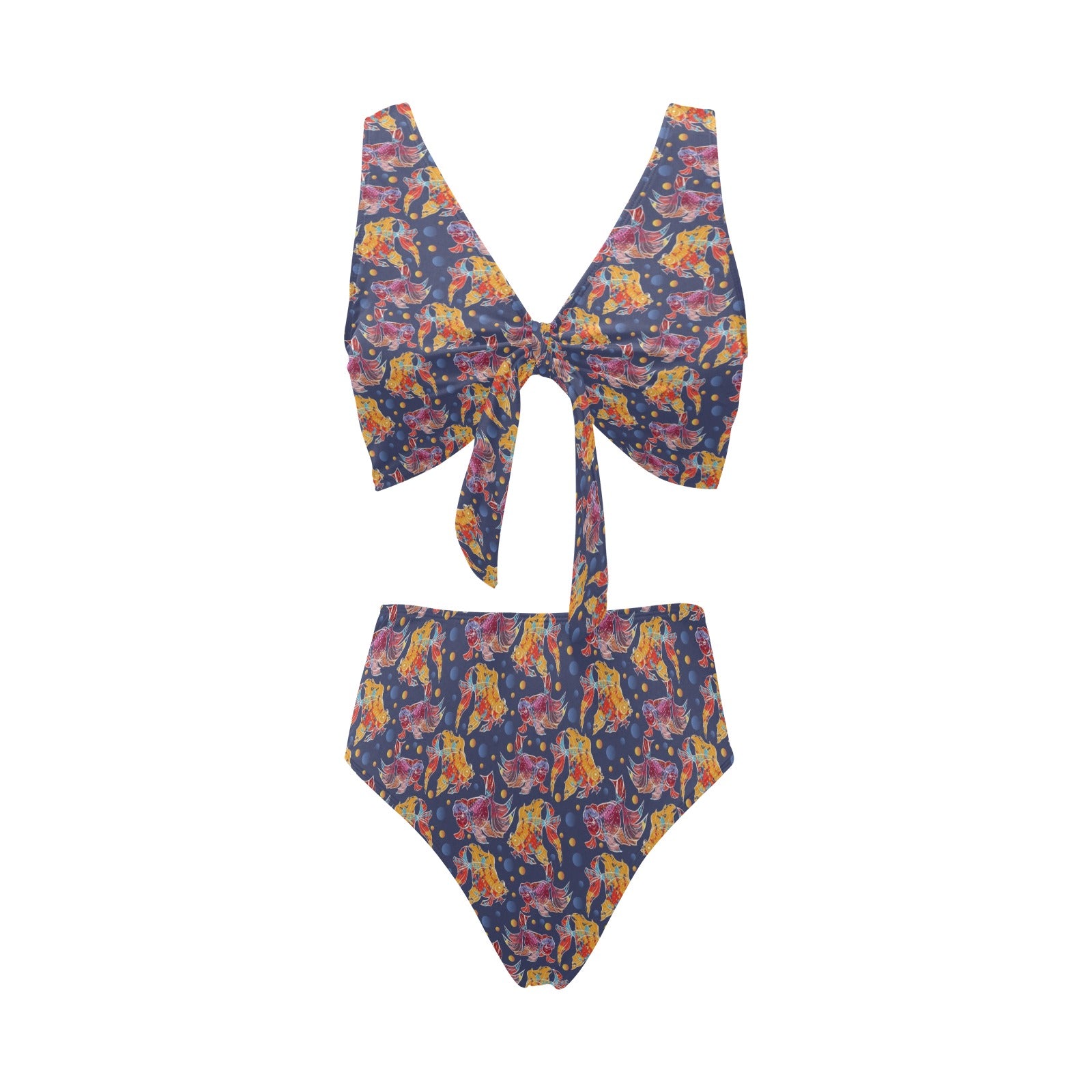 Goldfish Pattern Print Design 05 Chest Bowknot High Waisted Bikini Swimsuit