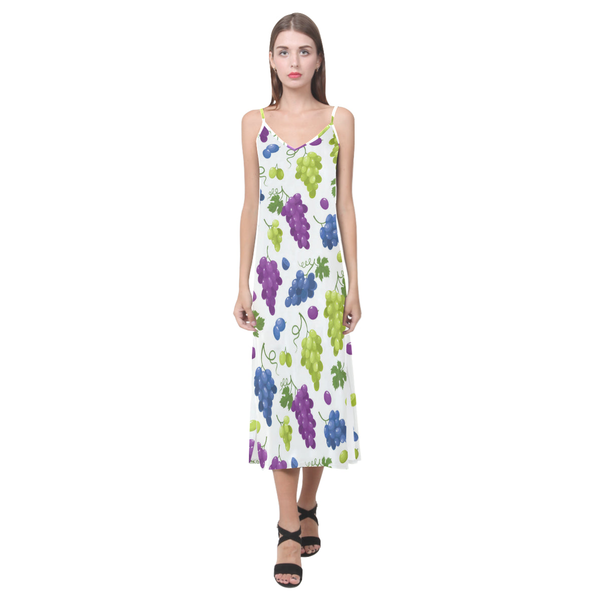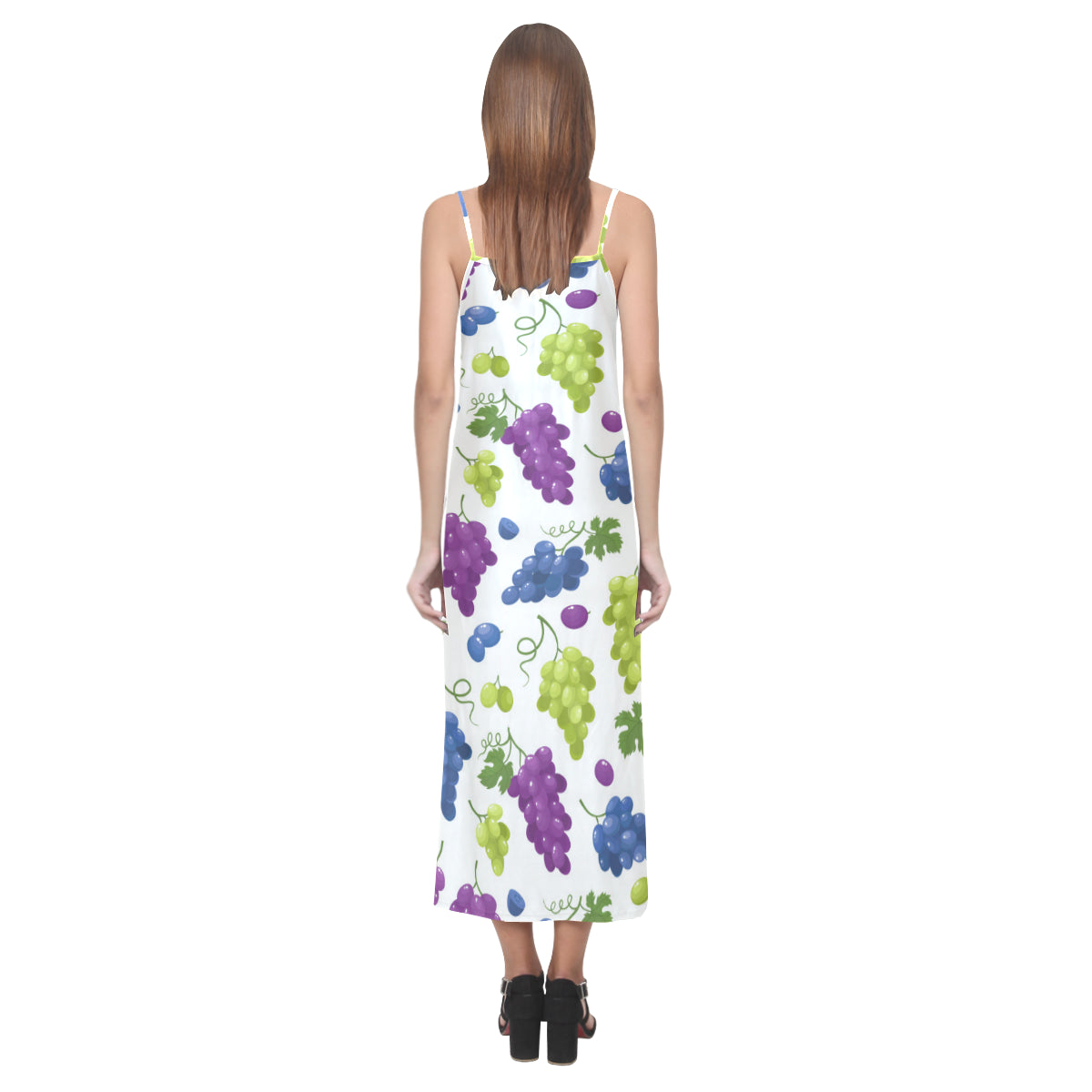 Grape pattern V-Neck Open Fork Long Dress is a uniqued design and limited item. It made to order, hand printed, and sewn with love in our factory.