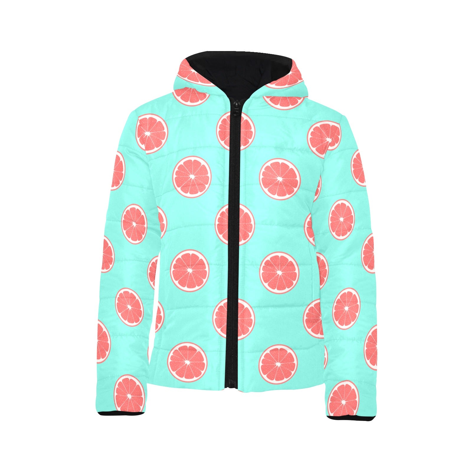 Grapefruit green background Kids' Boys' Girls' Padded Hooded Jacket