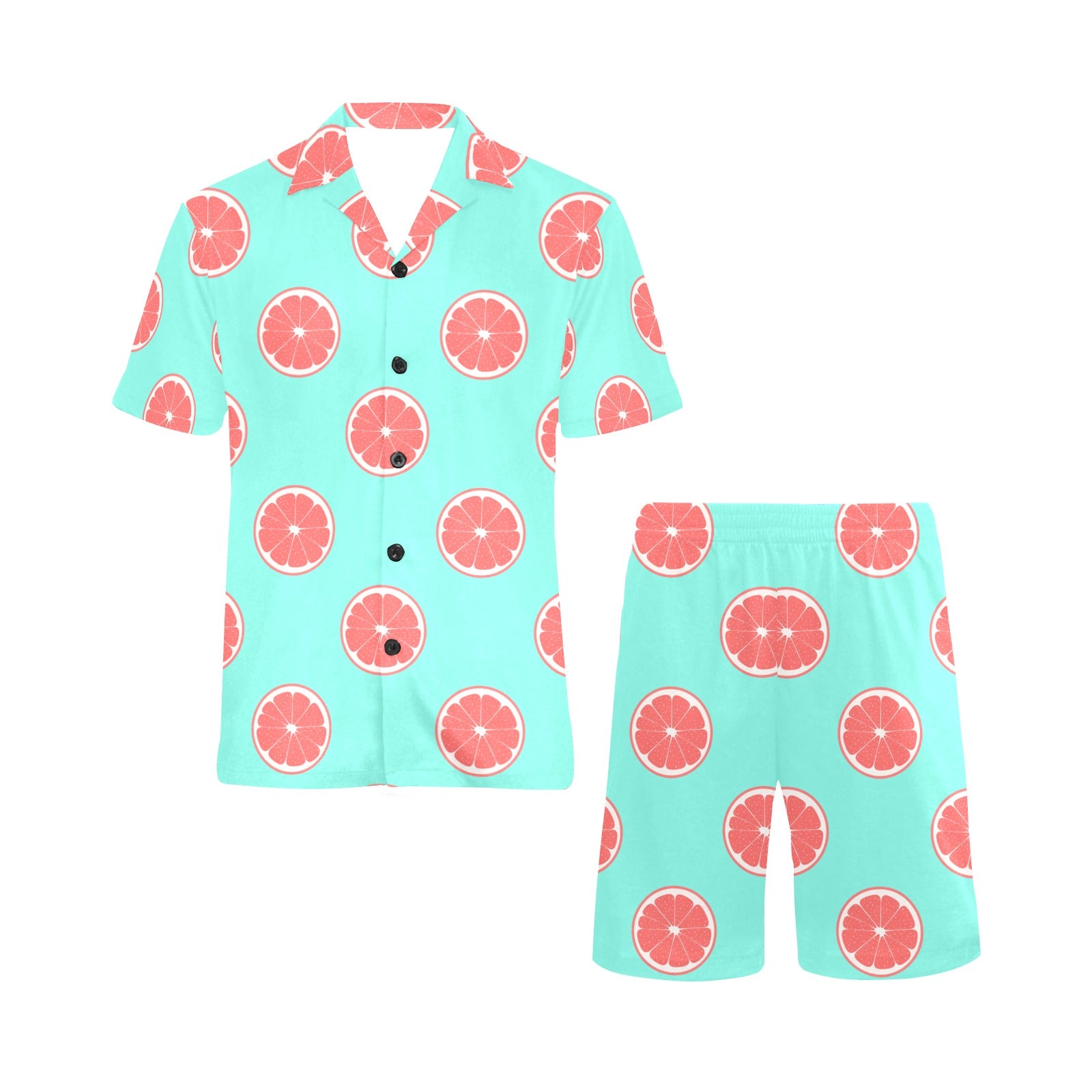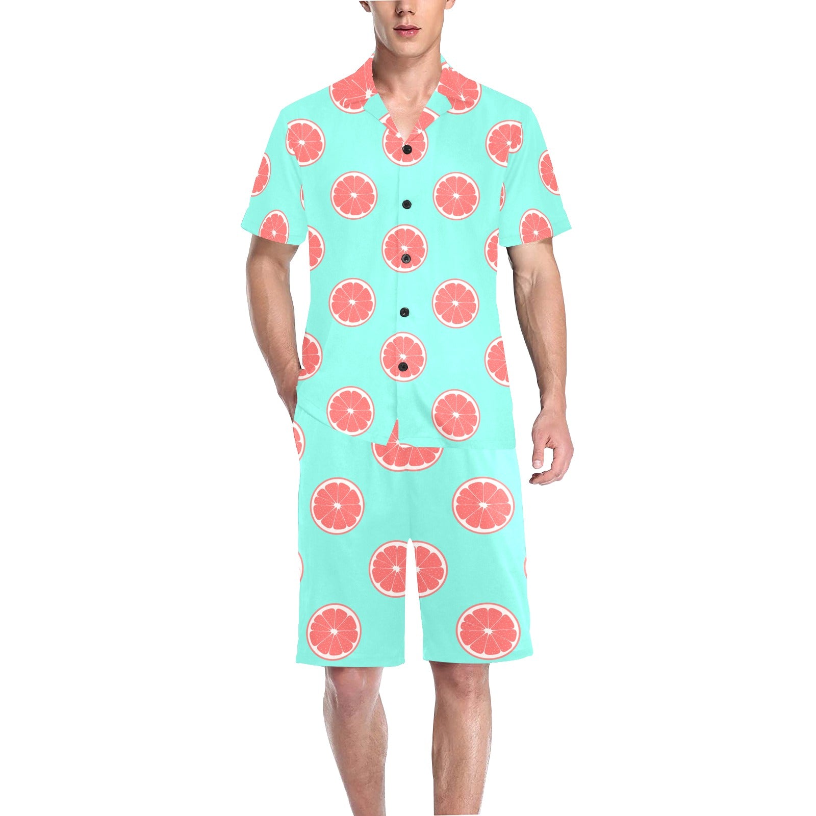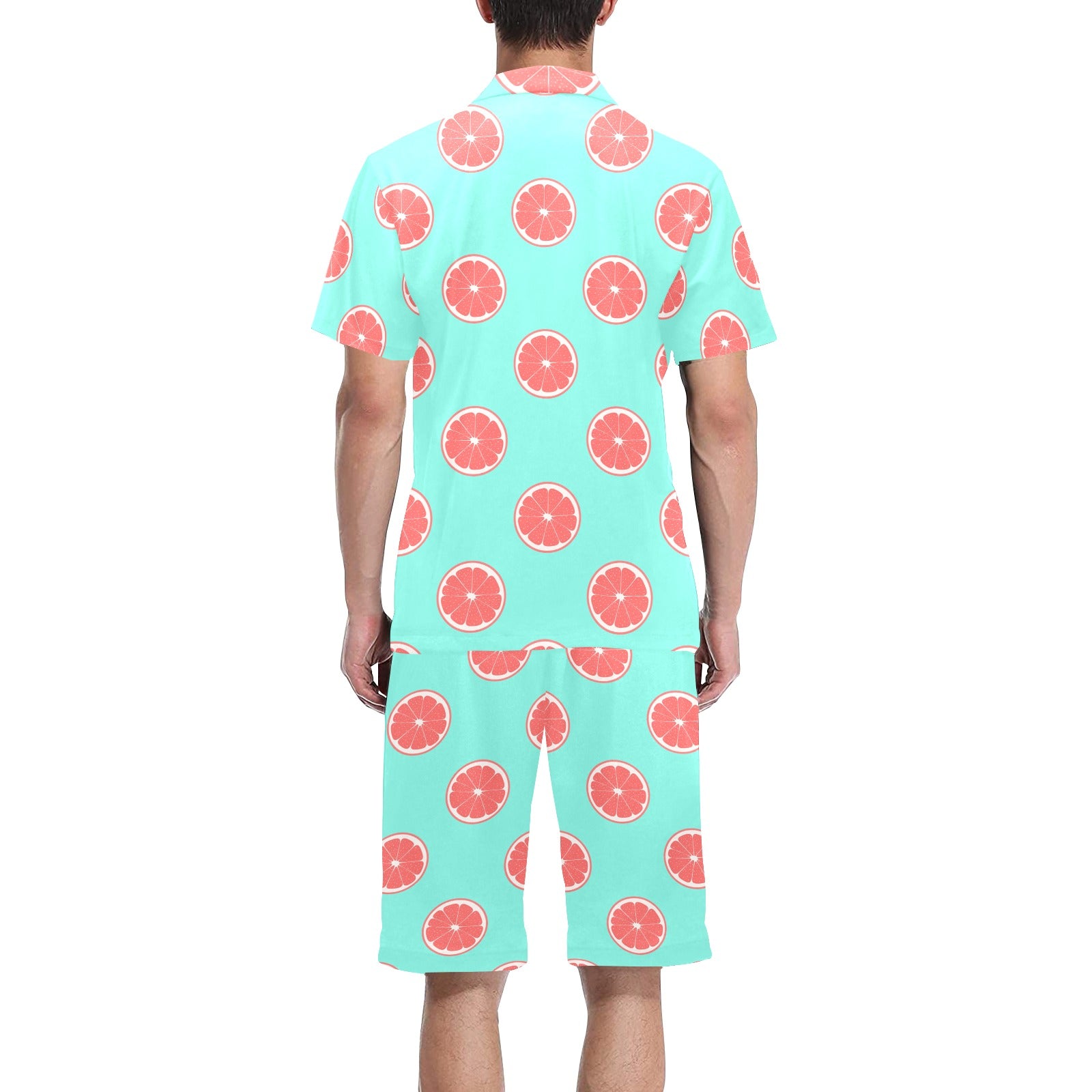 Grapefruit green background Men's V-Neck Short Pajama Set