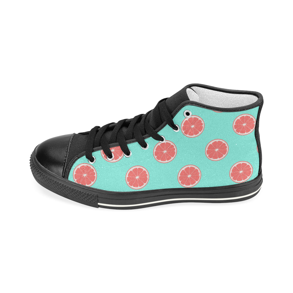 Grapefruit green background Women's High Top Canvas Shoes Black