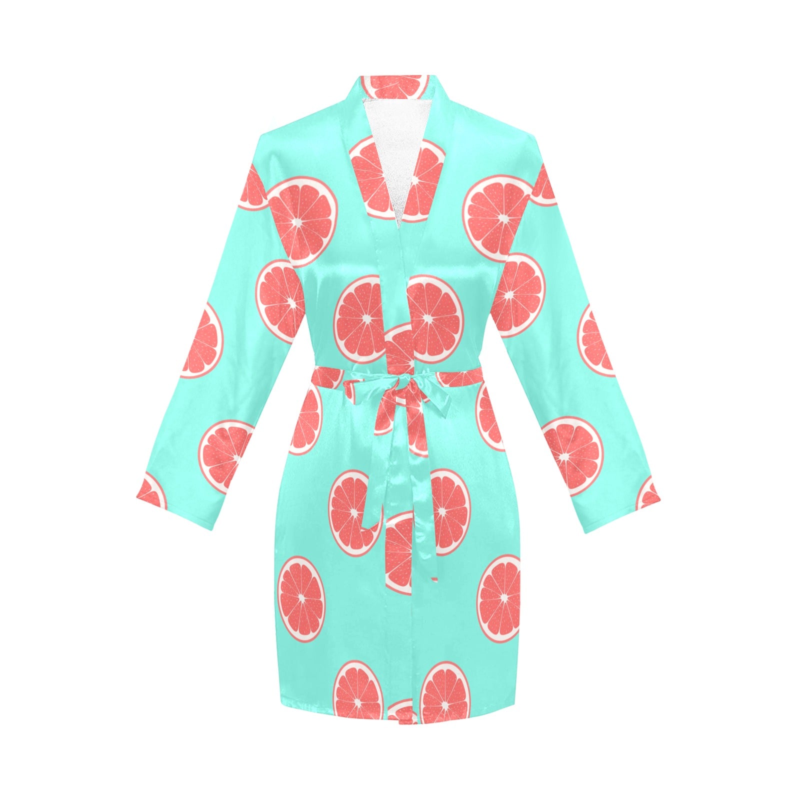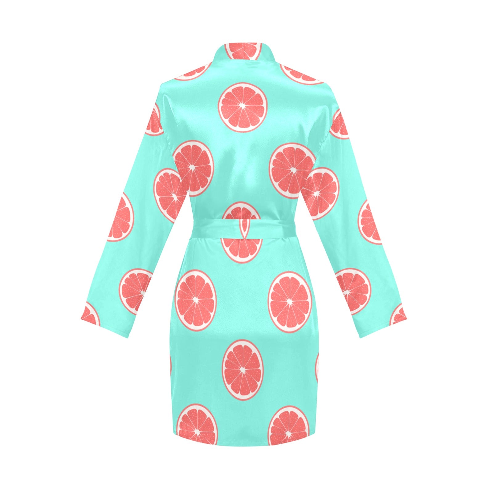 Grapefruit green background Women's Long Sleeve Belted Night Robe