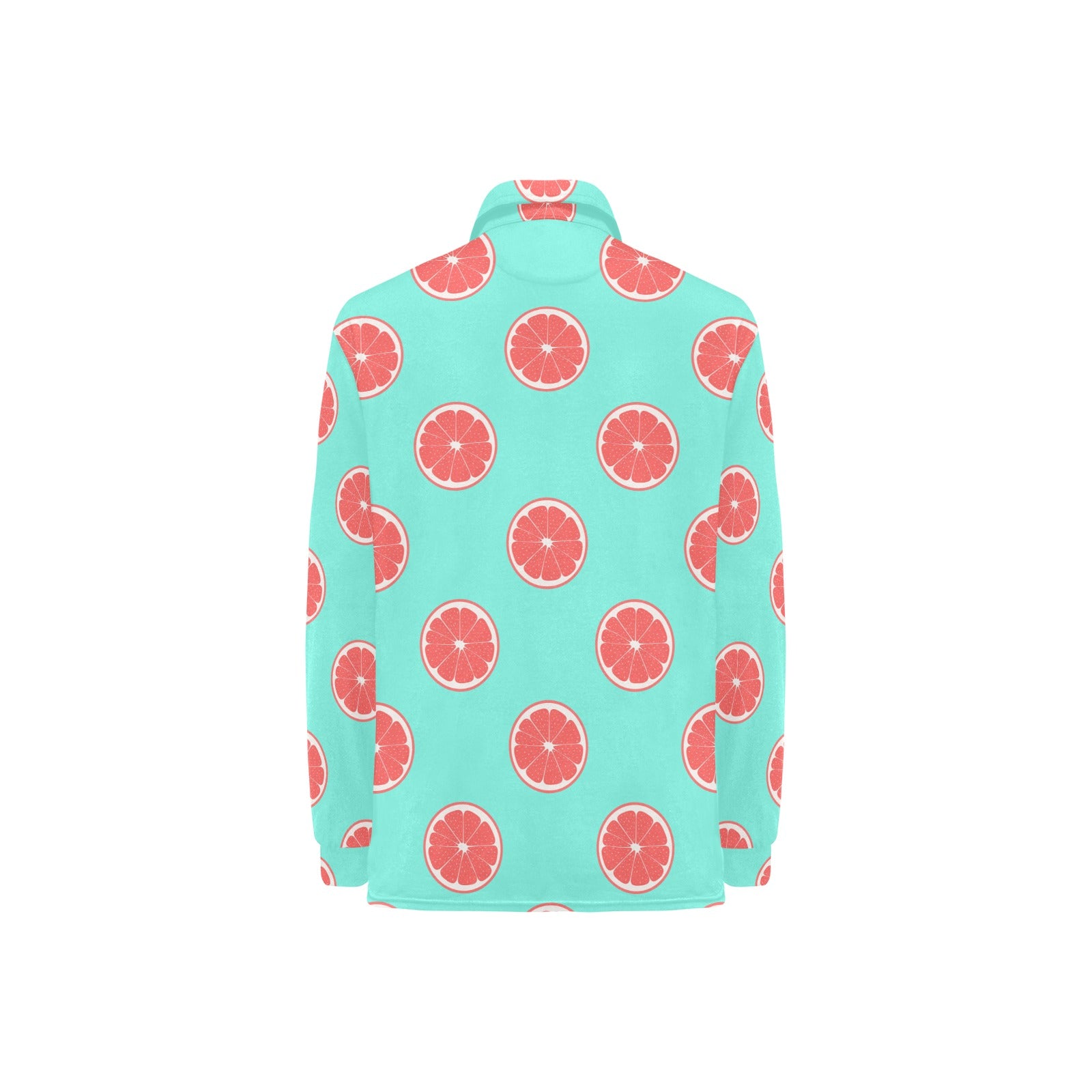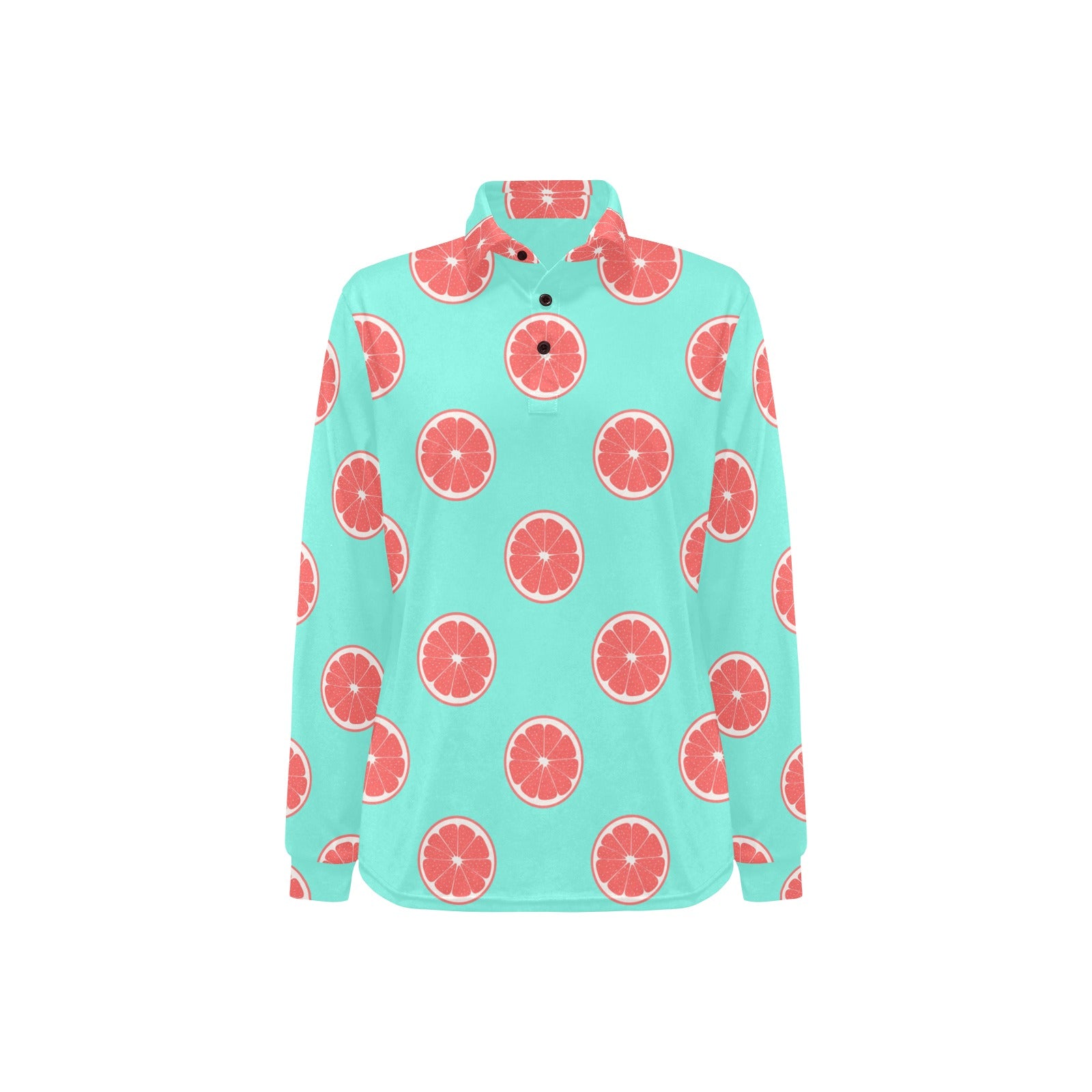 Grapefruit green background Women's Long Sleeve Polo Shirt