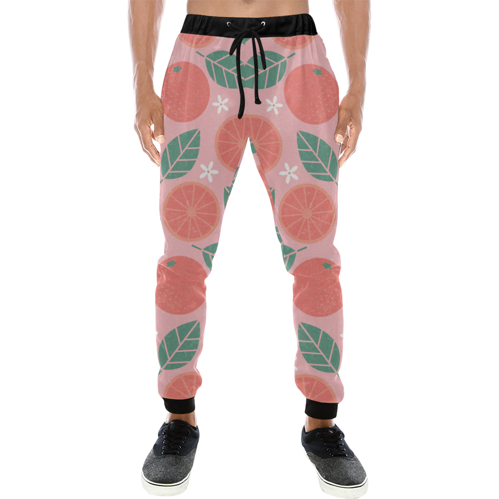 Grapefruit leaves flower pink background Unisex Casual Sweatpants