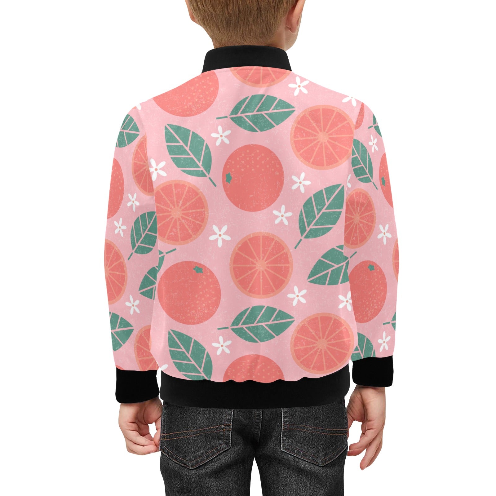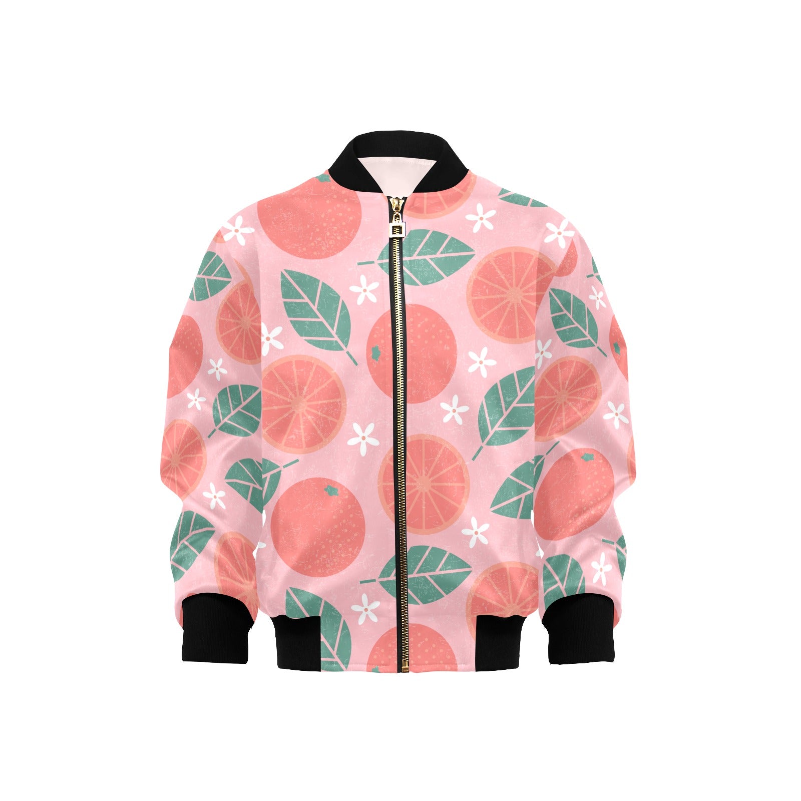 Grapefruit leaves flower pink background Kids' Boys' Girls' Bomber Jacket