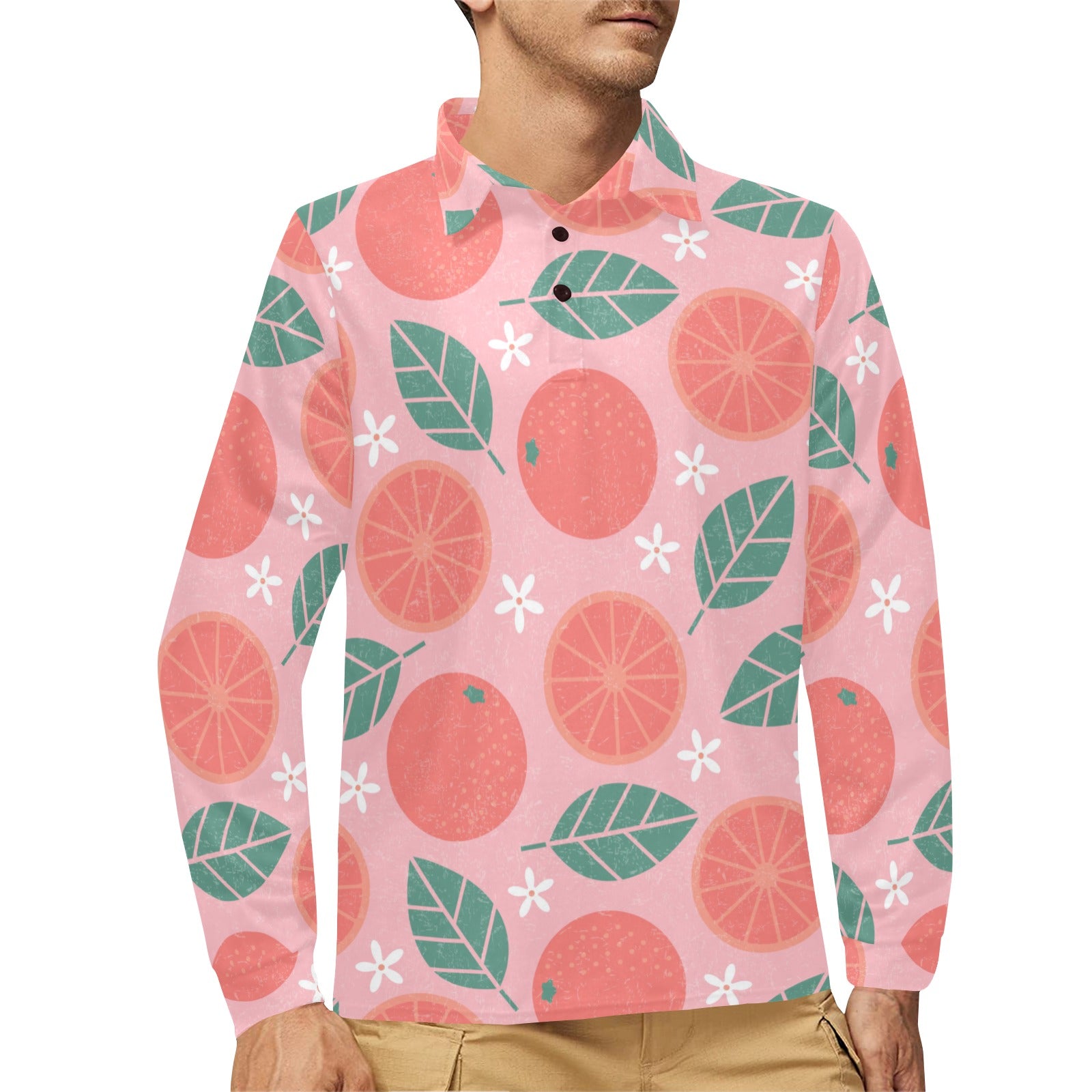 Grapefruit leaves flower pink background Men's Long Sleeve Polo Shirt
