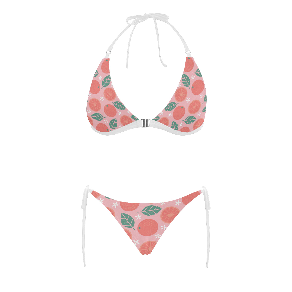 Grapefruit leaves flower pink background Sexy Bikinis Two-Piece Swimsuits are uniqued design and limited item. It made to order, hand printed, and sewn with love in our factory.