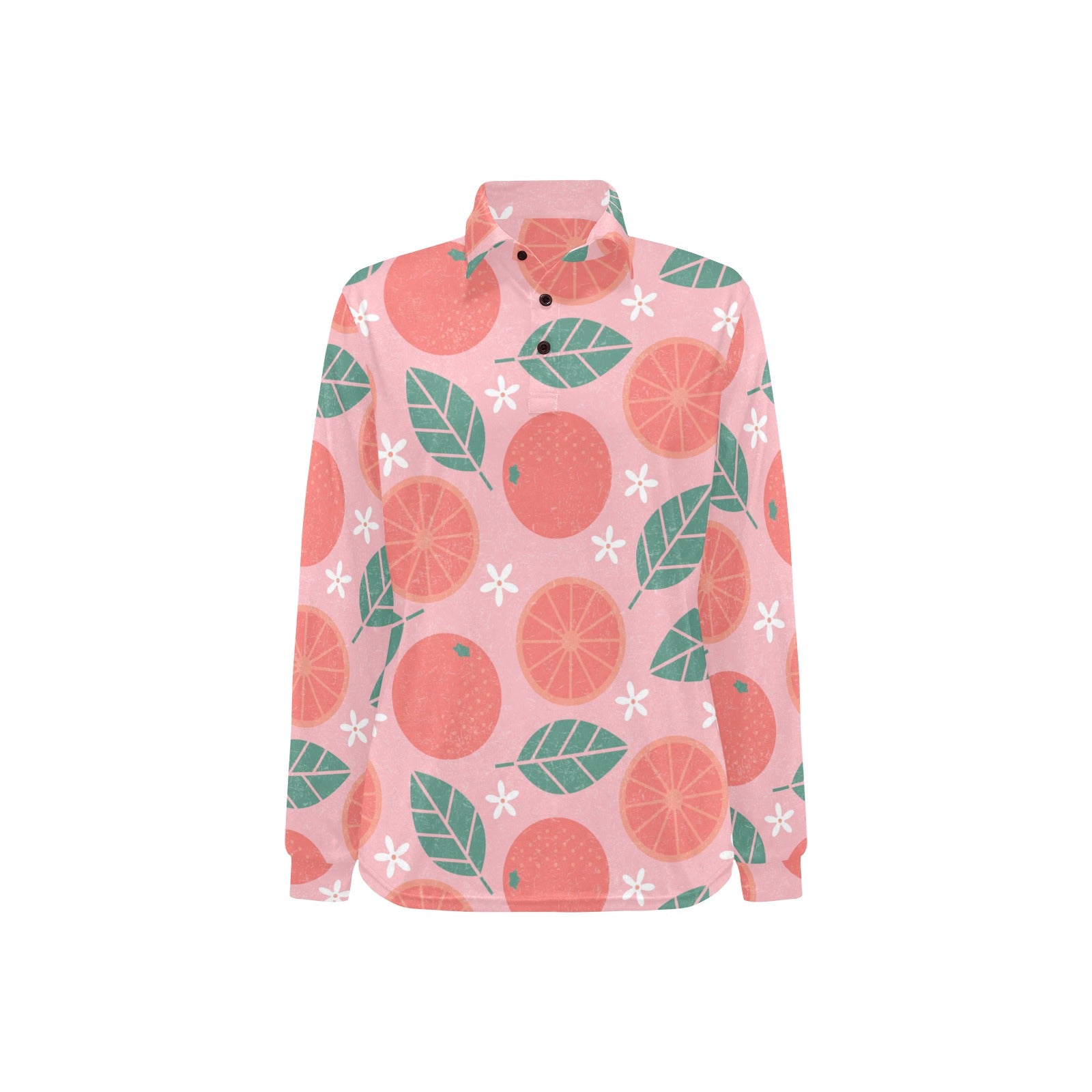 Grapefruit leaves flower pink background Women's Long Sleeve Polo Shirt