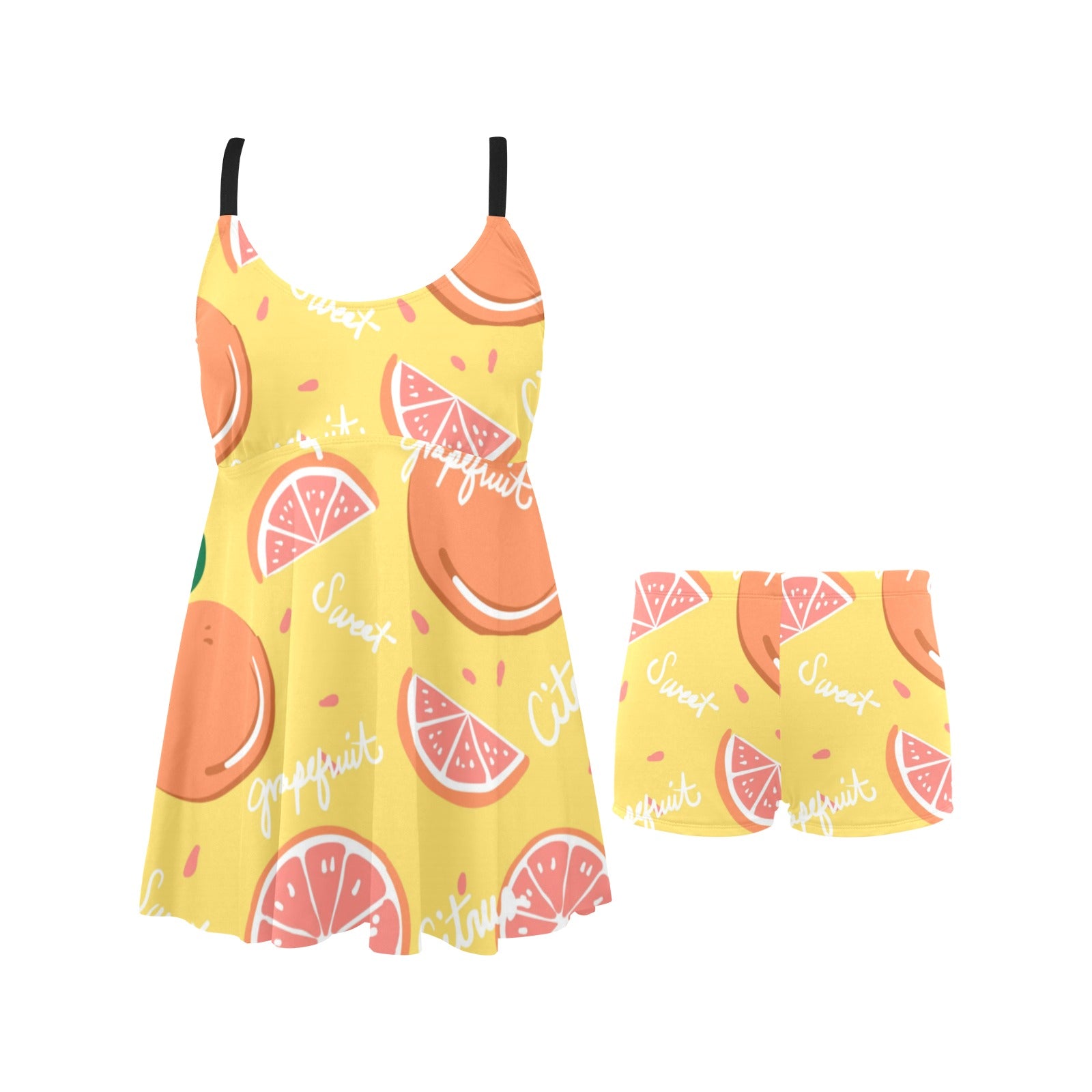 Grapefruit yellow background Chest Sexy Pleated Two Piece Swim Dress