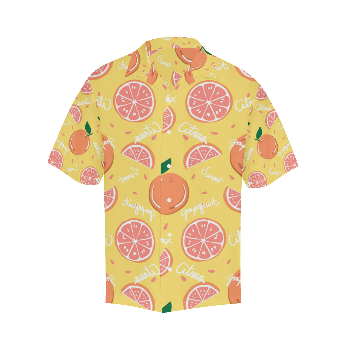 Grapefruit yellow background Men's All Over Print Hawaiian Shirt is a uniqued design and limited item. It made to order, hand printed, and sewn with love in our factory.