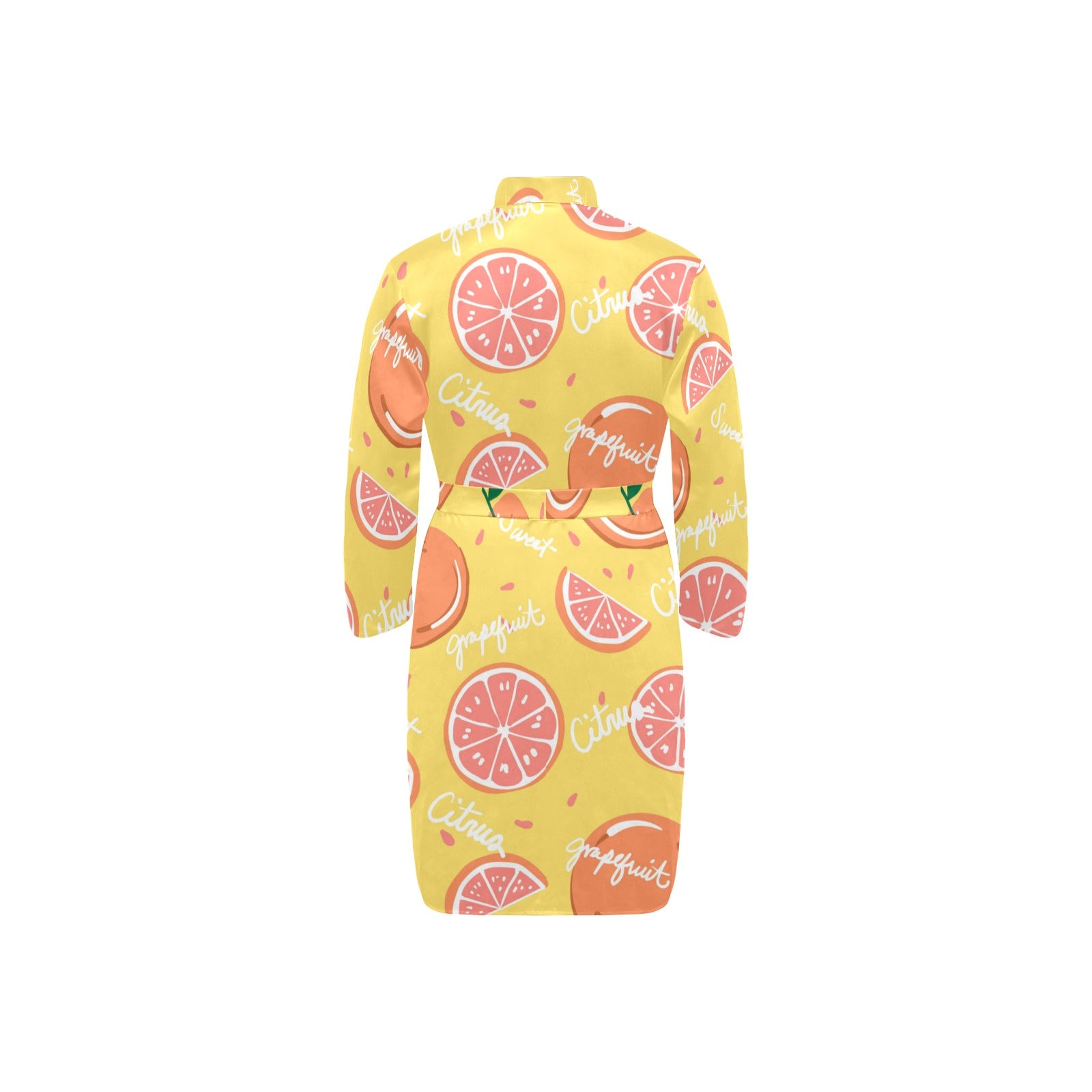 Grapefruit yellow background Men's Long Sleeve Belted Night Robe