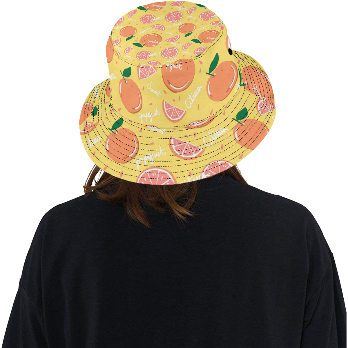 Grapefruit yellow background Unisex Bucket Hat is a uniqued design and limited item. It made to order, hand printed, and sewn with love in our factory.