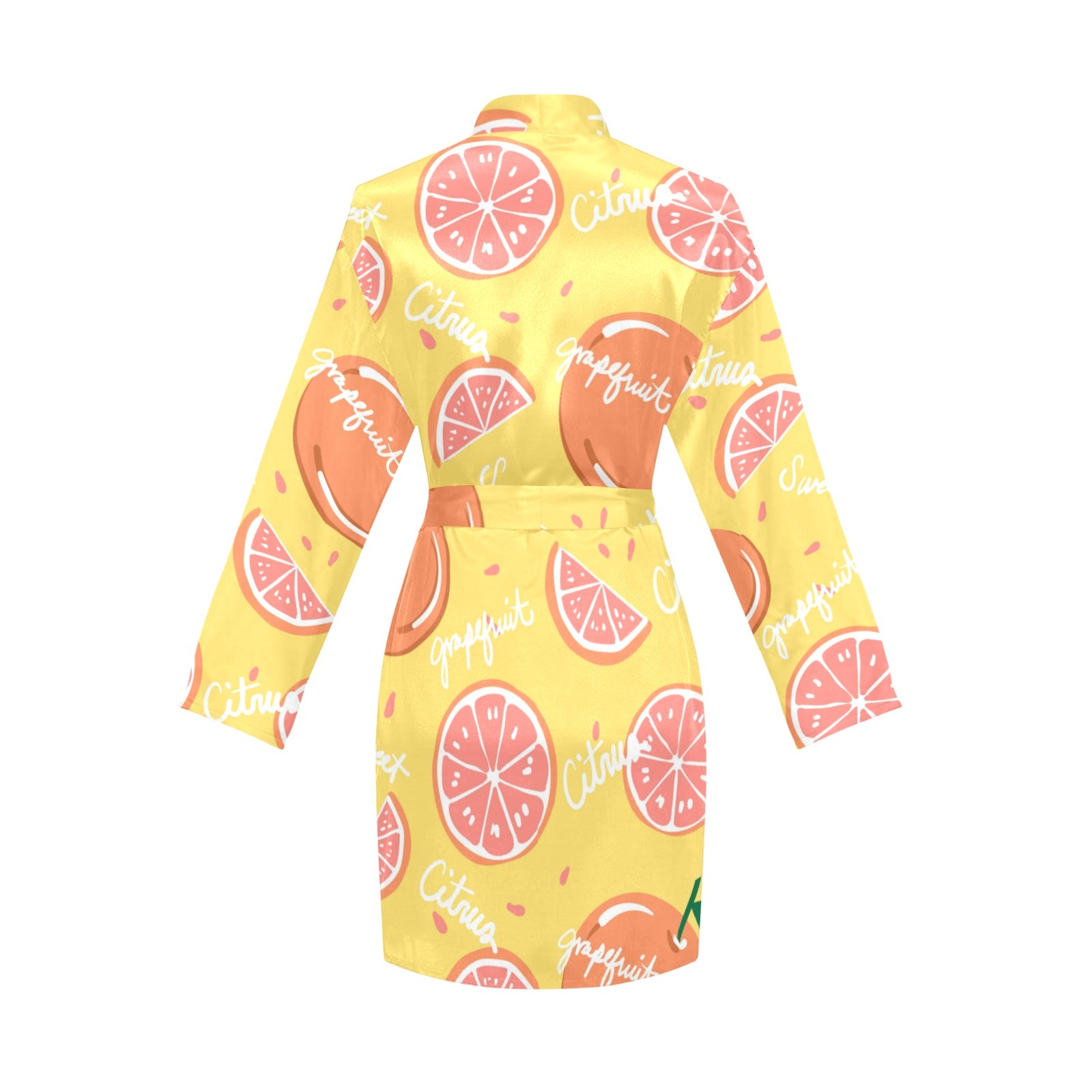 Grapefruit yellow background Women's Long Sleeve Belted Night Robe
