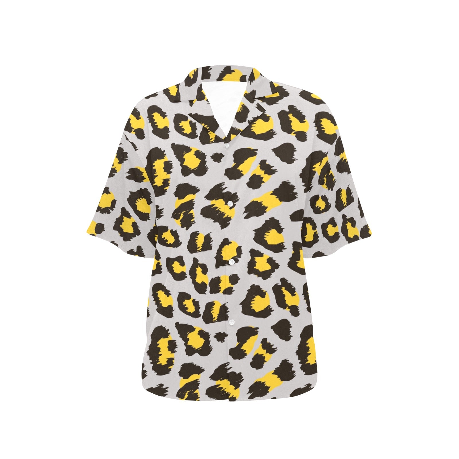 Gray Leopard print pattern Women's All Over Print Hawaiian Shirt