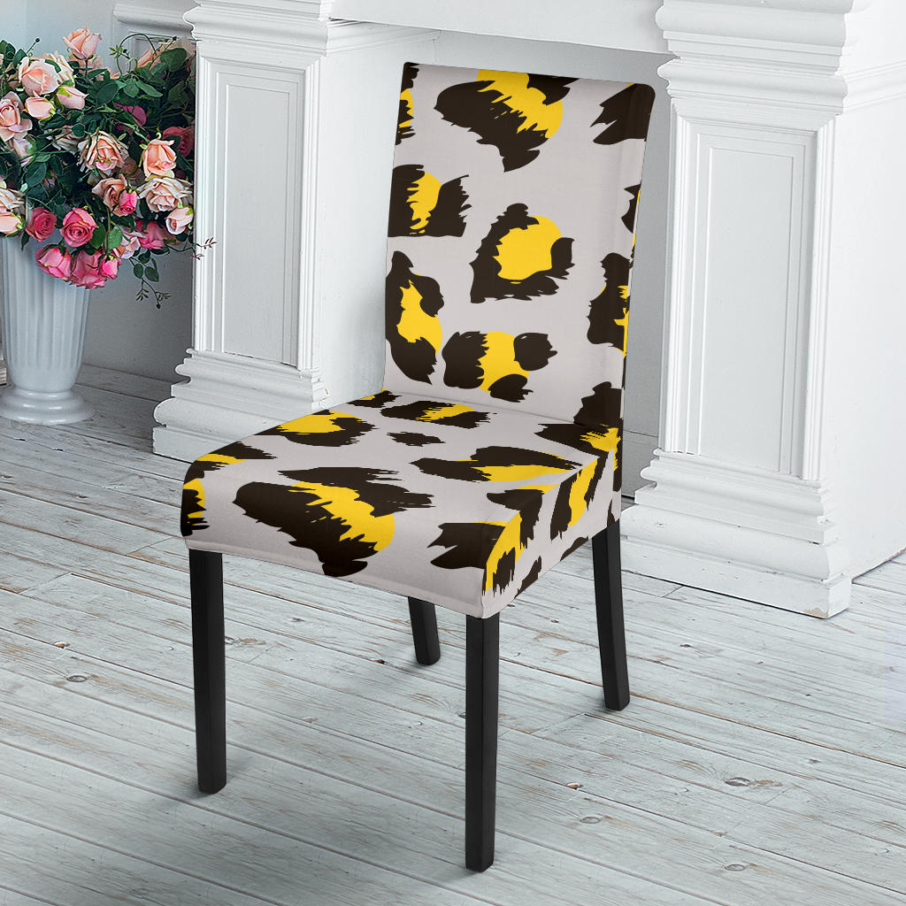 Gray Leopard Print Pattern Dining Chair Slipcover