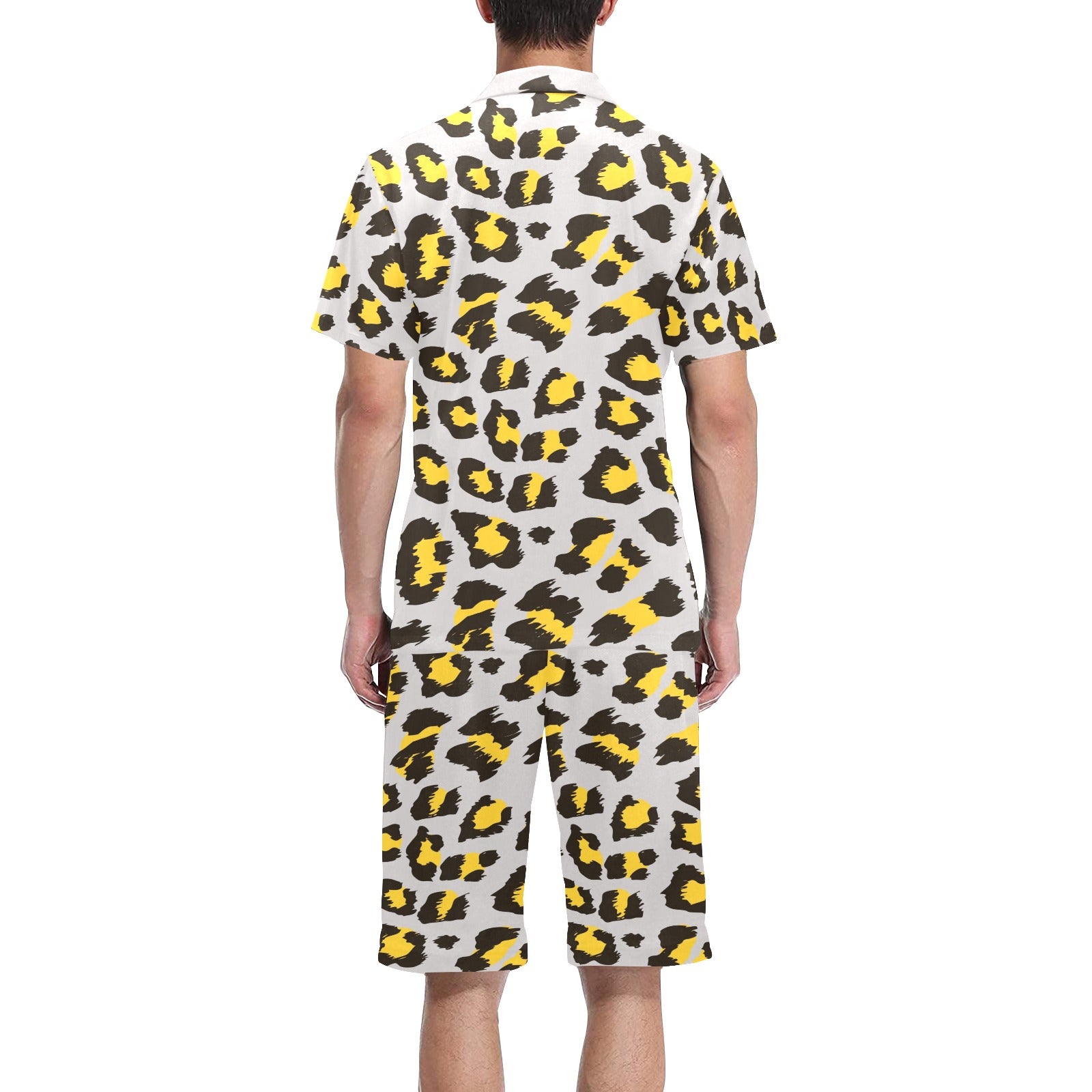 Gray Leopard print pattern Men's V-Neck Short Pajama Set