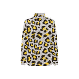 Gray Leopard print pattern Women's Long Sleeve Polo Shirt