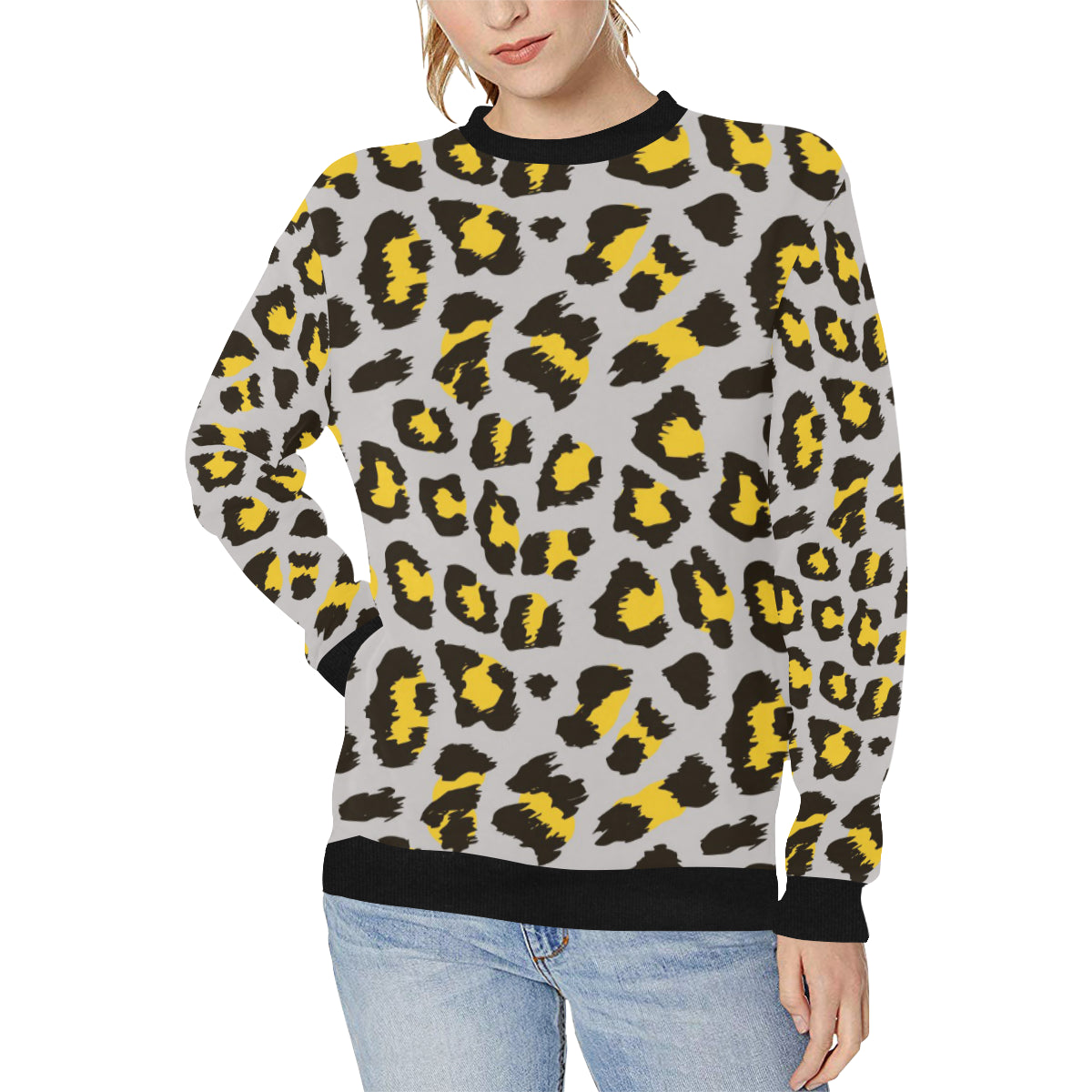 Gray Leopard print pattern Women's Crew Neck Sweatshirt is a uniqued design and limited item. It made to order, hand printed, and sewn with love in our factory.